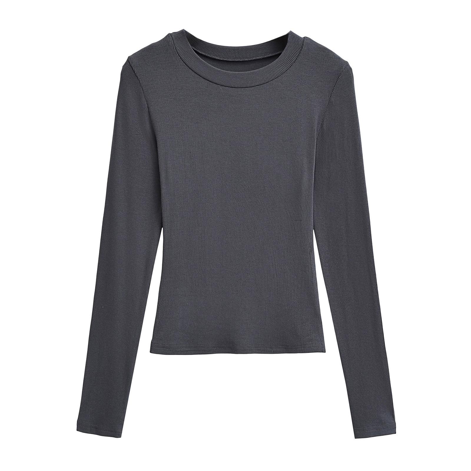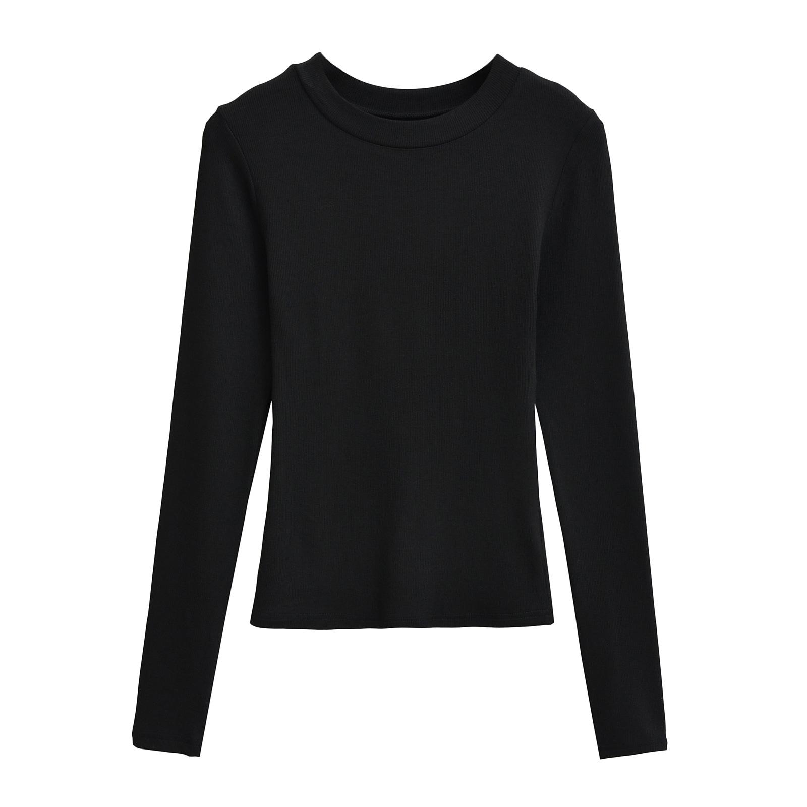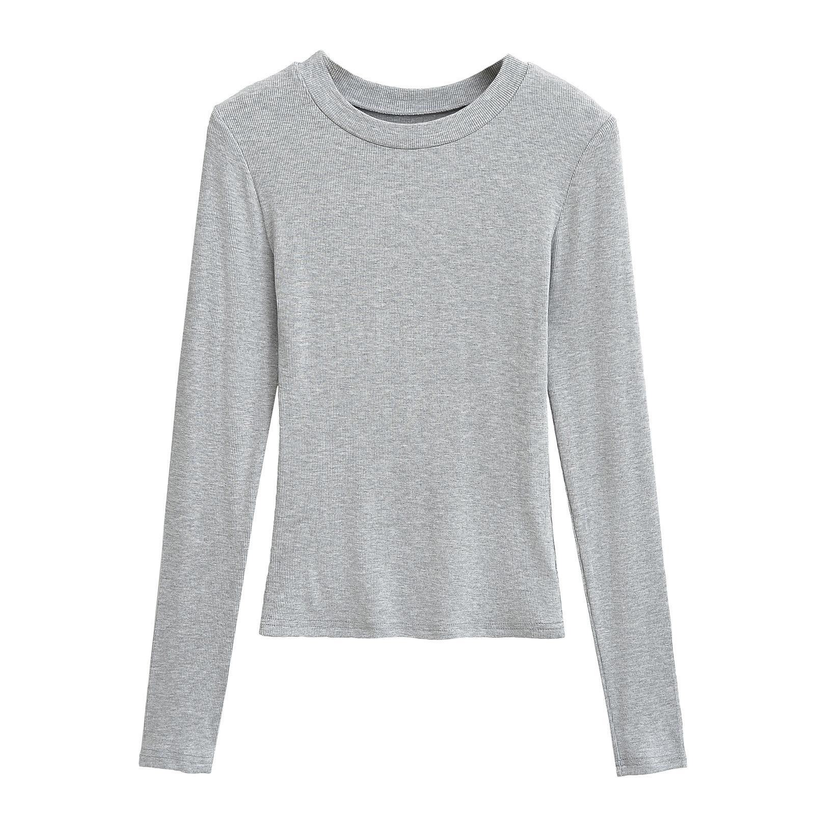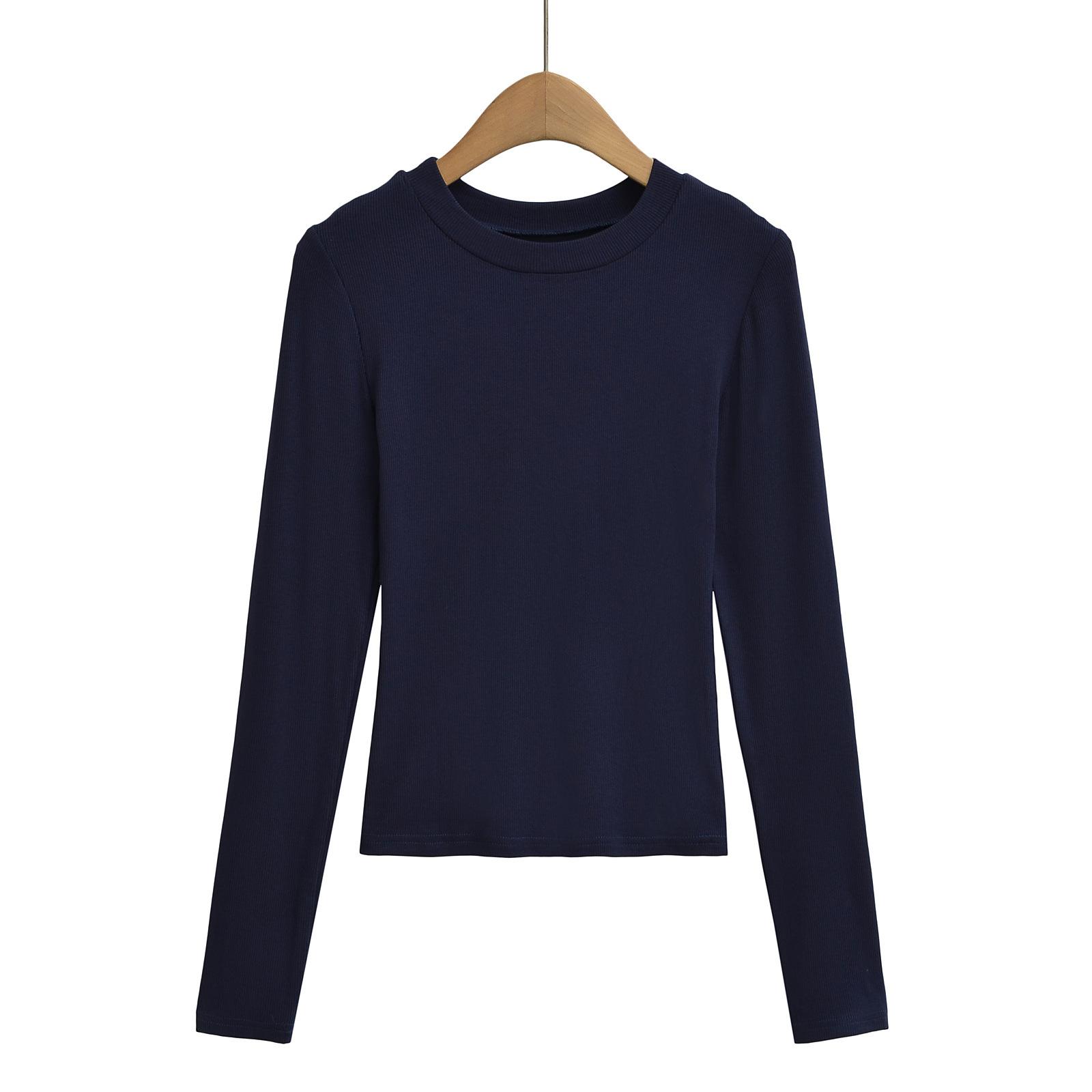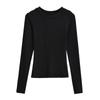 2024 Outono e Inverno Nova Pequena Gola Redonda Estilo Simples Básico Manga Longa Camiseta Feminina Design Sense Camisa Base Feminina Top