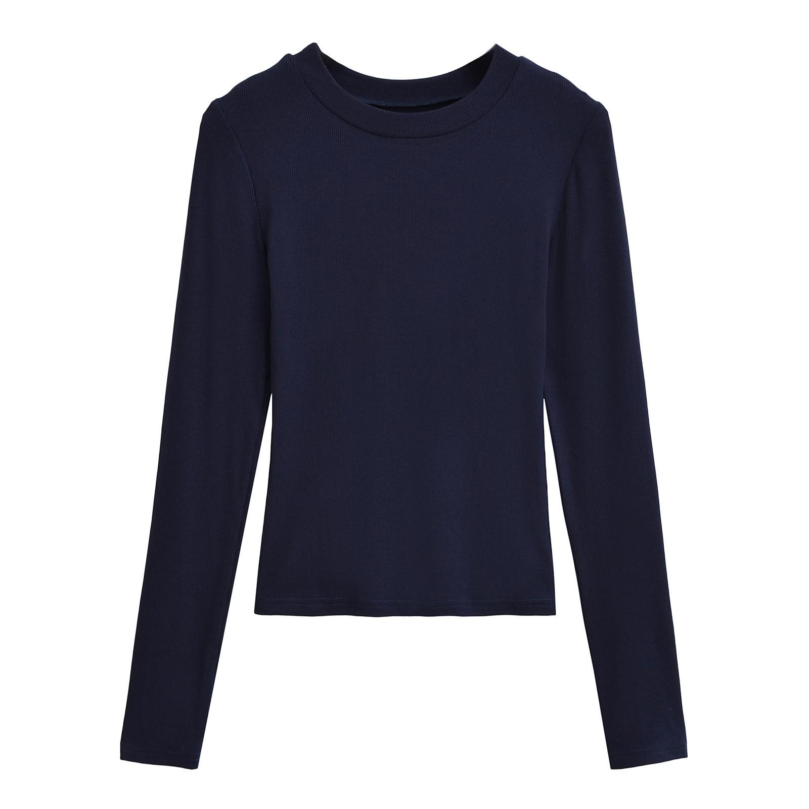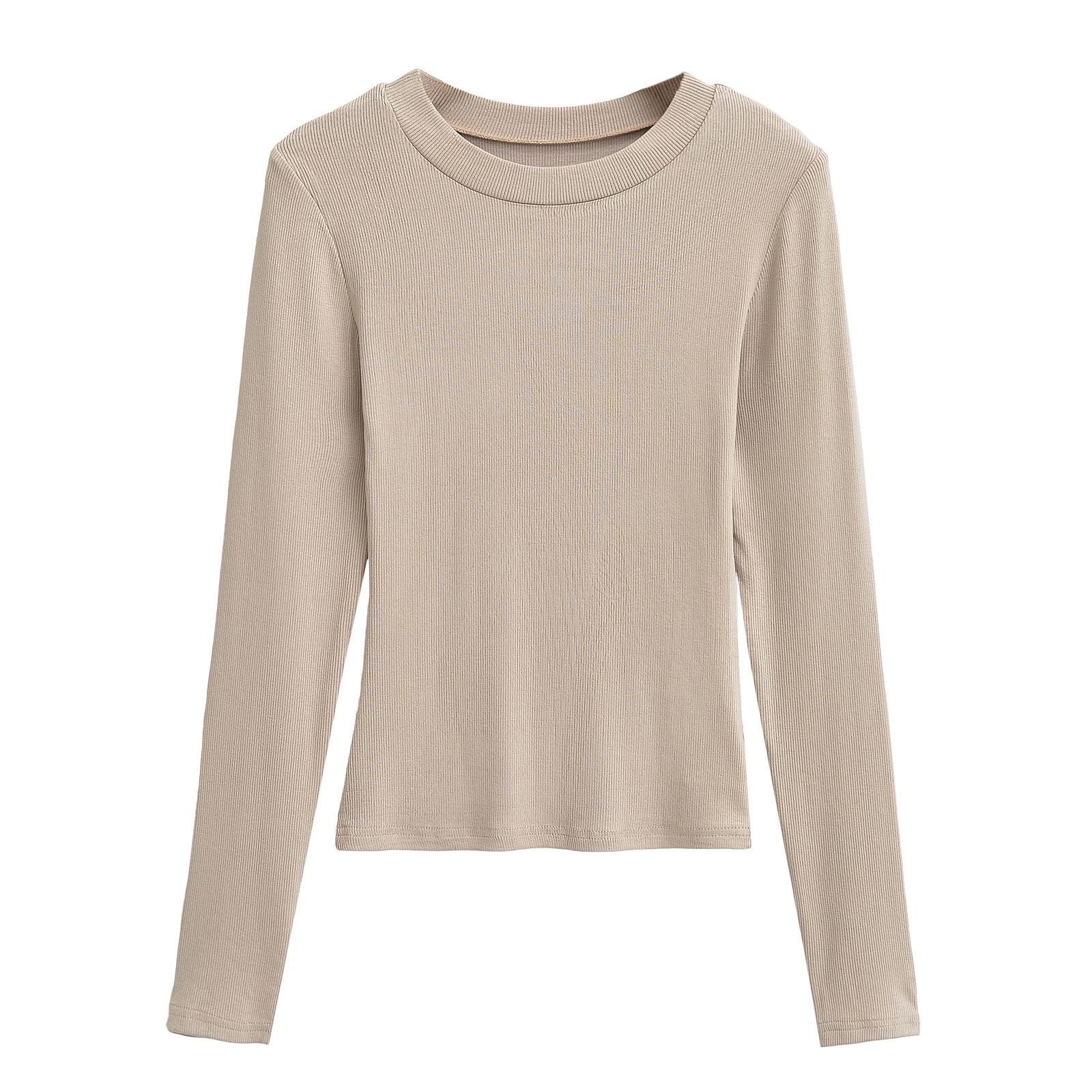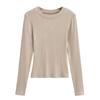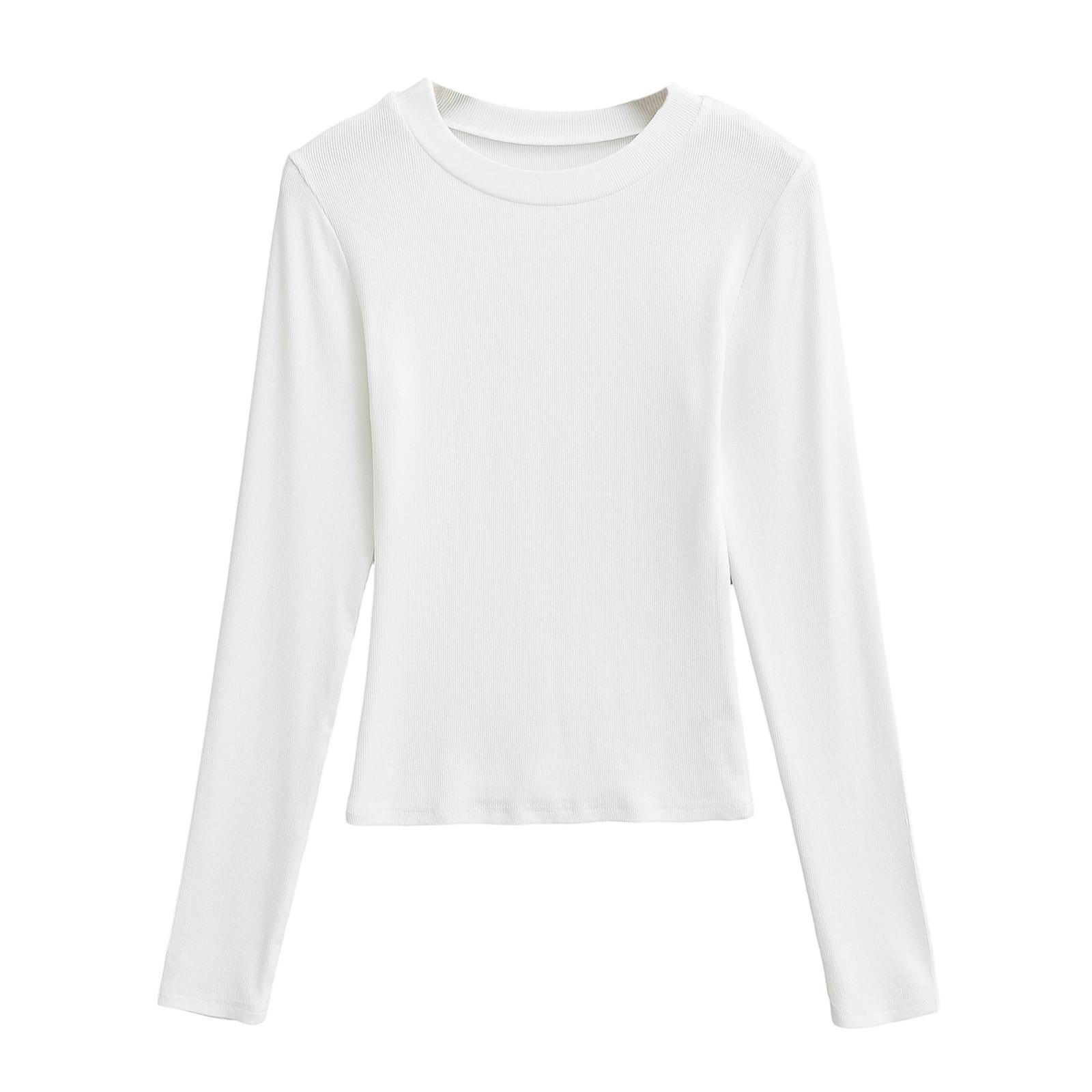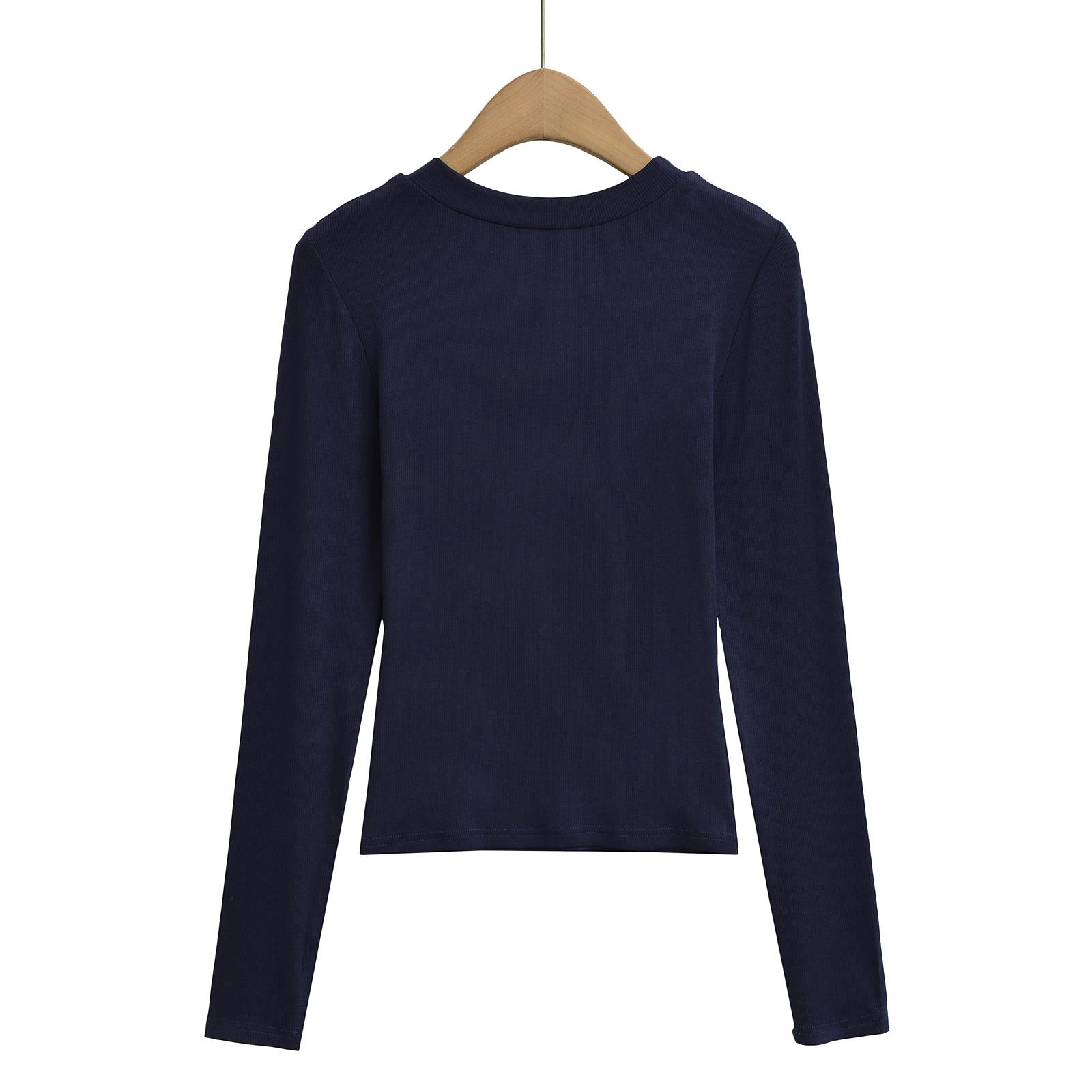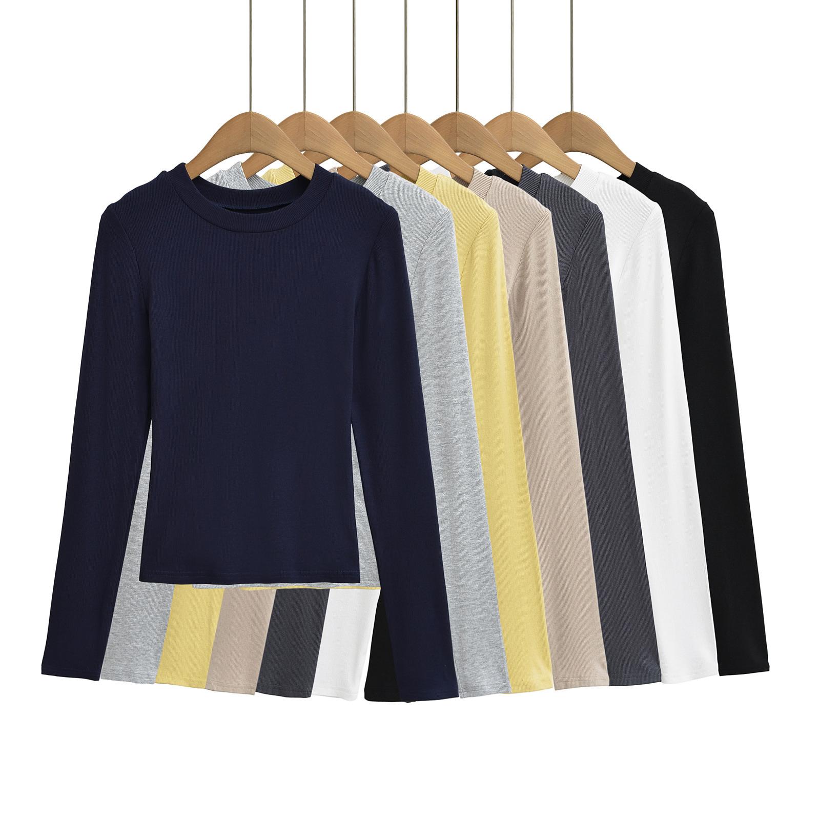 2024 Outono e Inverno Nova Pequena Gola Redonda Estilo Simples Básico Manga Longa Camiseta Feminina Design Sense Camisa Base Feminina Top