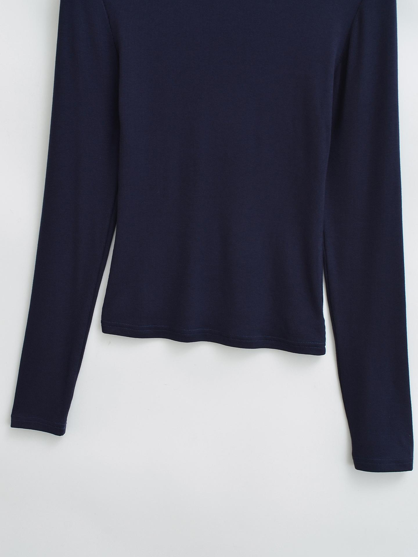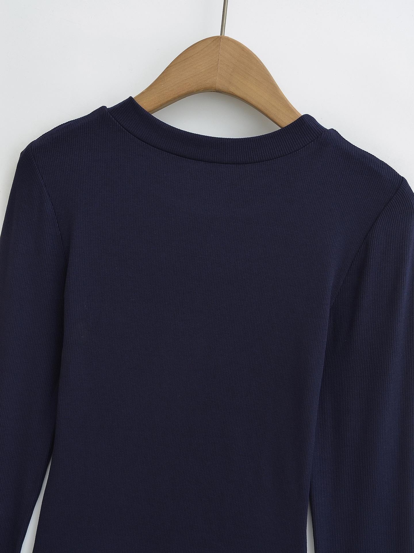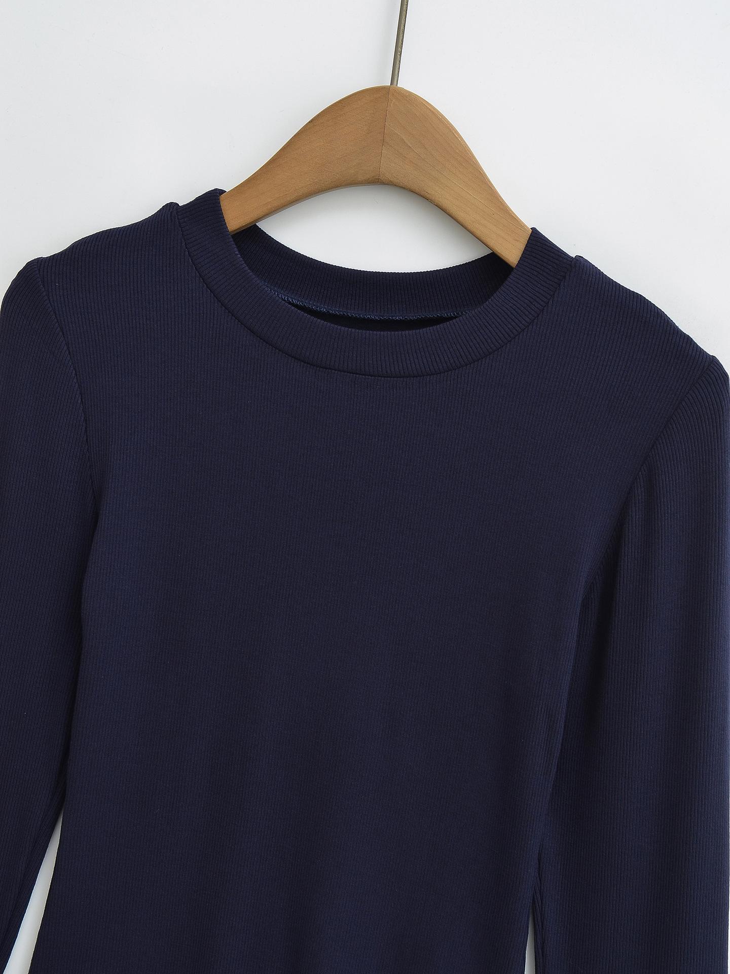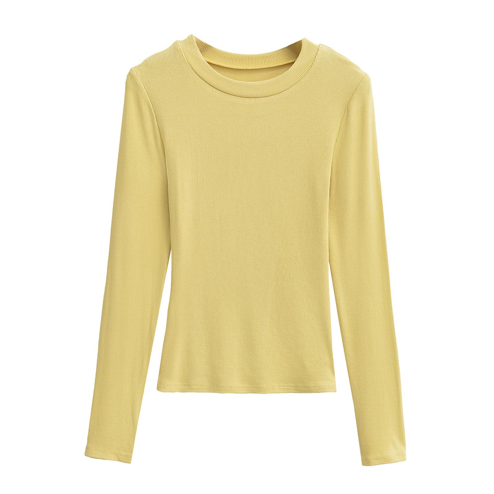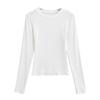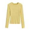 2024 Outono e Inverno Nova Pequena Gola Redonda Estilo Simples Básico Manga Longa Camiseta Feminina Design Sense Camisa Base Feminina Top