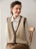Colete Outerwear de Lã Laçada Retrô Estilo Coreano 2025 Outono e Inverno Peludo em Camadas Gola Alta Colete Tricotado
