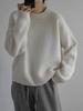 Outono e inverno novo suéter de malha de lã pura com gola redonda de cor sólida suéter feminino solto casual base macia encerada