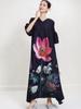 Vestido plus size Miyake feminino primavera e verão 2025 novo decote em V solto fino retrô estampado barriga cobrindo vestido longo linha A