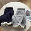Calças de algodão forradas de lã casuais pequenas femininas 2024 outono e inverno soltas finas quentes cintura alta rosa calças de perna larga