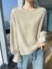 Outono e inverno novo suéter de cashmere de montanha feminino solto gola redonda cor sólida manga lanterna quente espessada lã malha base camisa