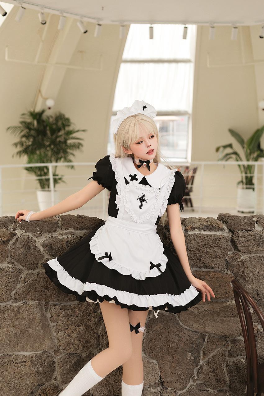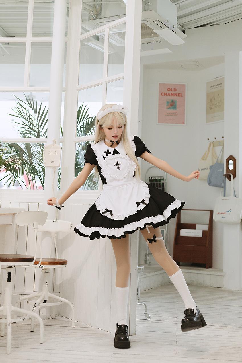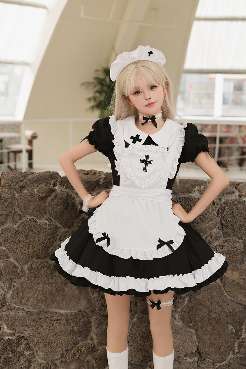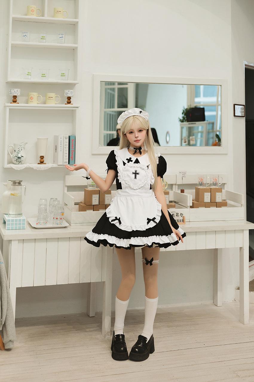Novo estilo japonês clássico de manga curta empregada doméstica bonito estilo japonês empregada doméstica cosplay roupas femininas roupas de empregada doméstica vestido cabelo