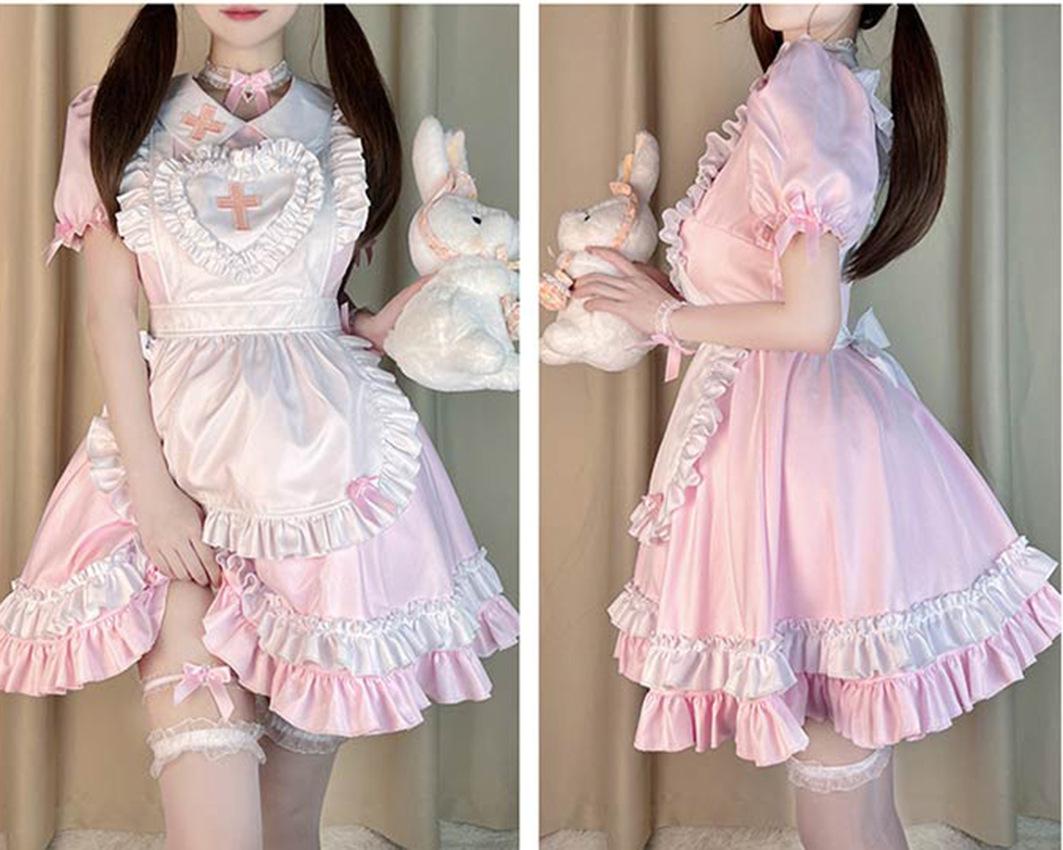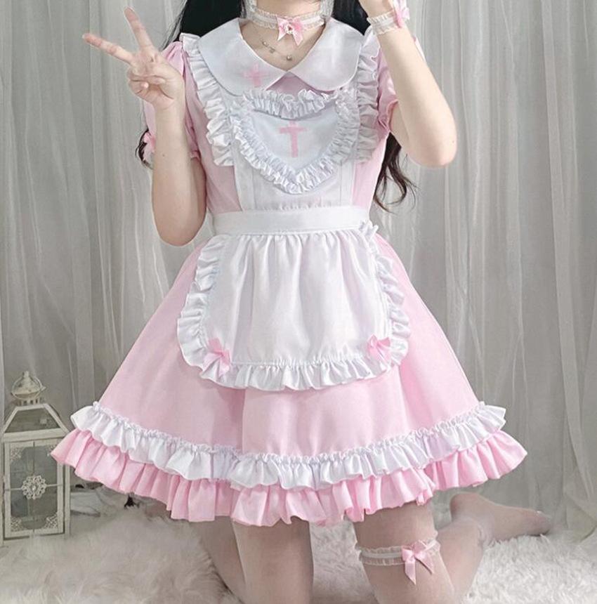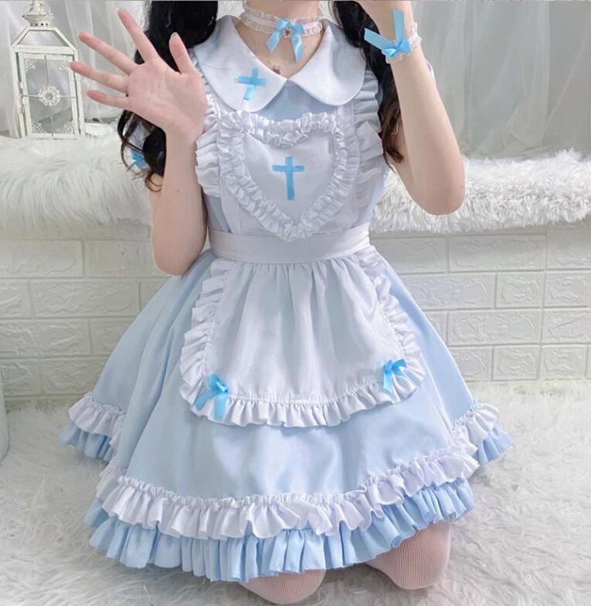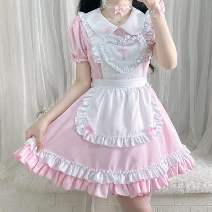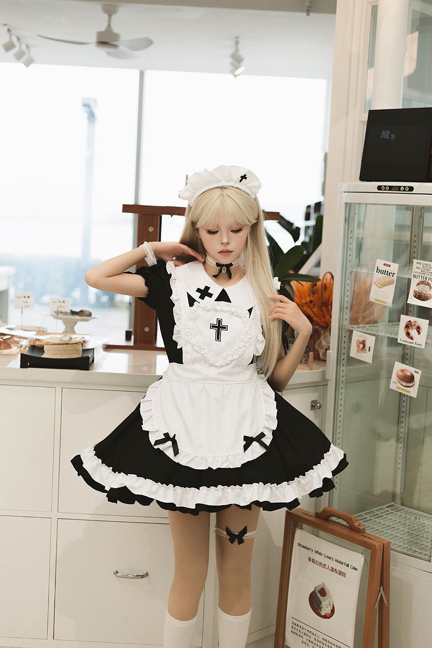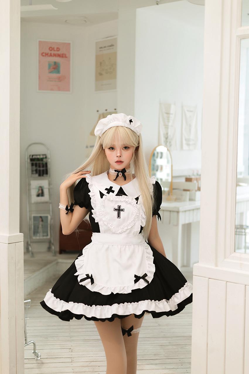 Novo estilo japonês clássico de manga curta empregada doméstica bonito estilo japonês empregada doméstica cosplay roupas femininas roupas de empregada doméstica vestido cabelo