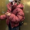 Ankesela Sobretudo Vermelho de Algodão para Mulheres Outono e Inverno 2025 Com Capuz Silhueta Classuda Pequeno Curto Acolchoado Quente Sobretudo Pão