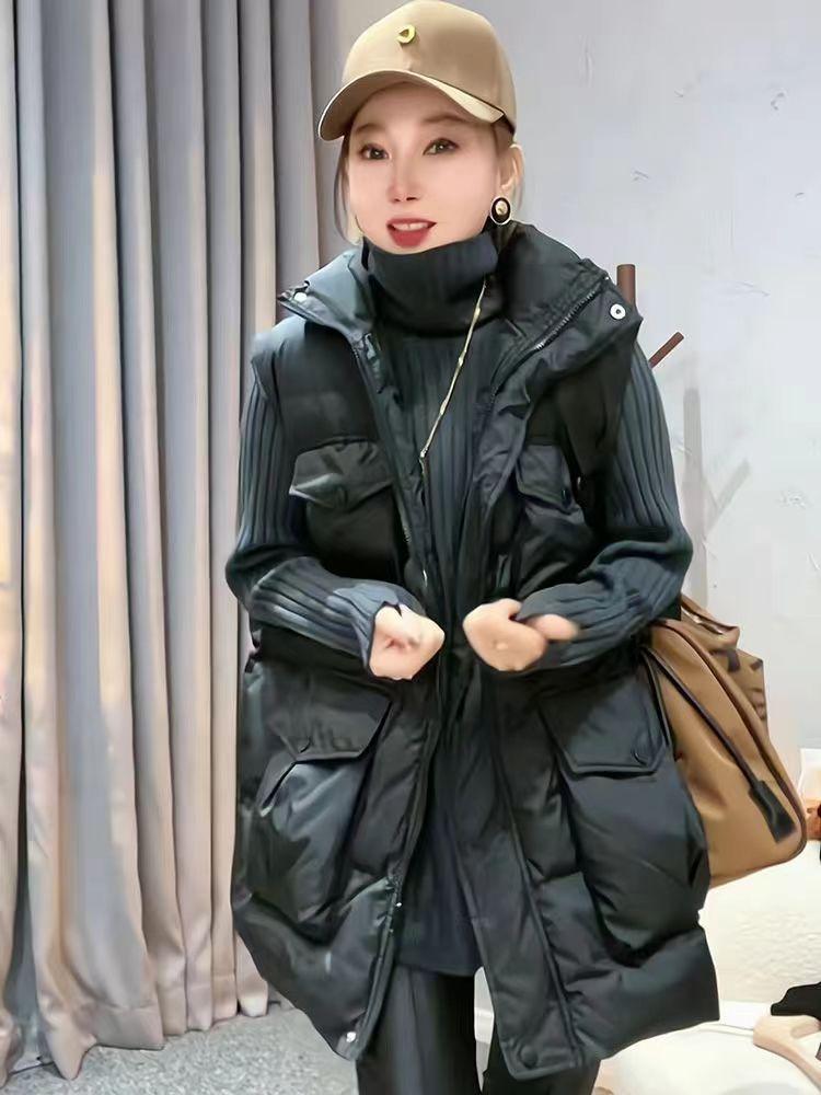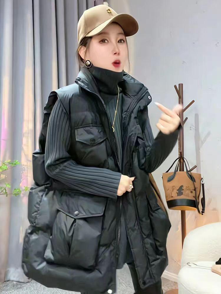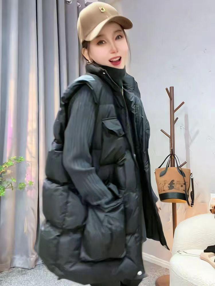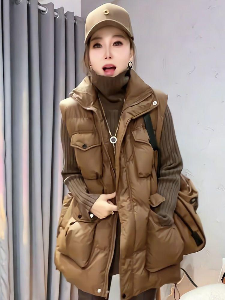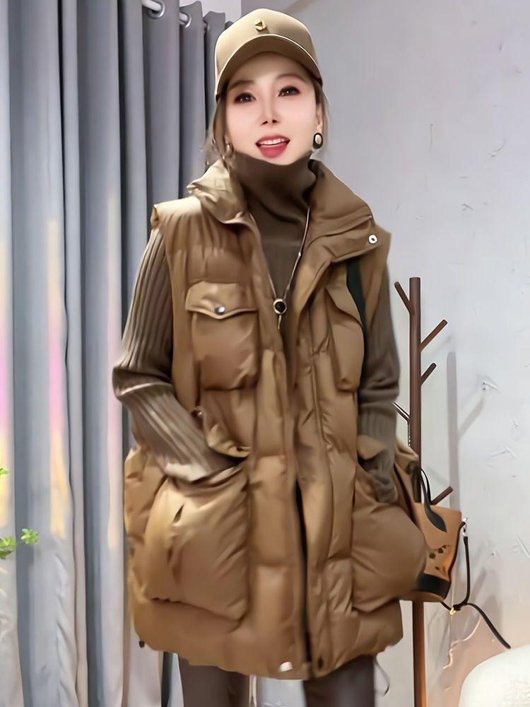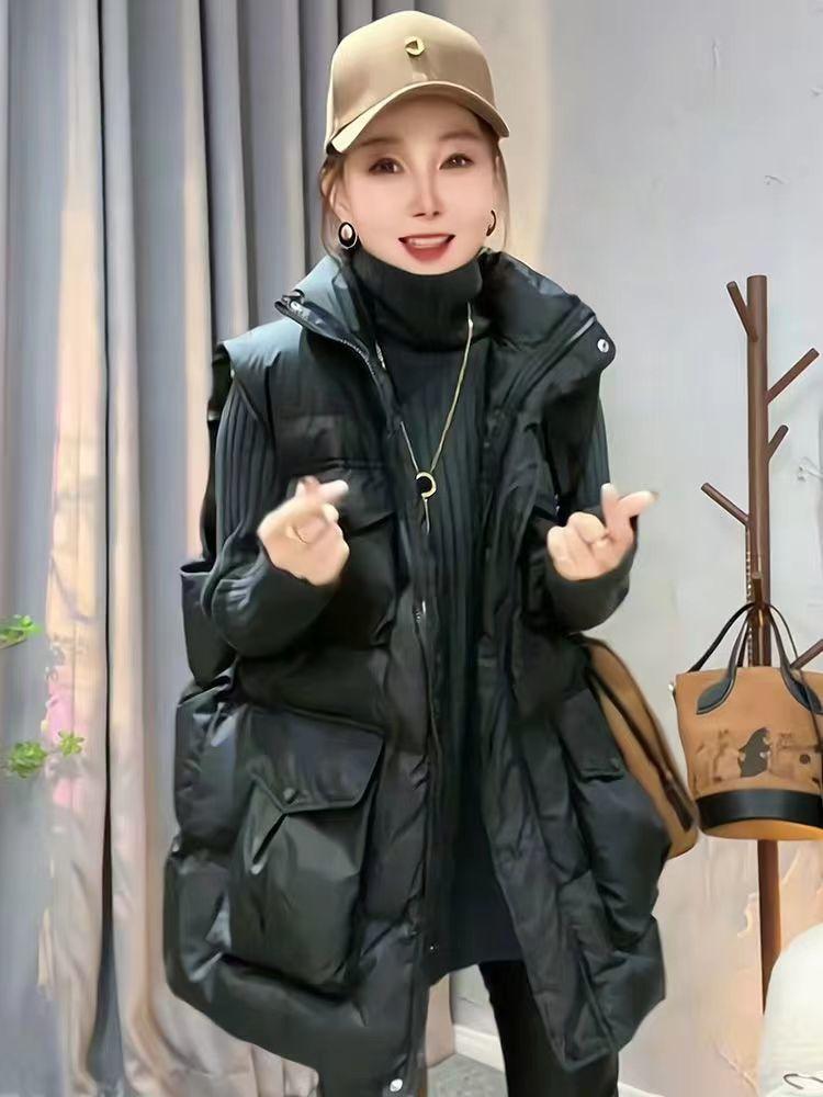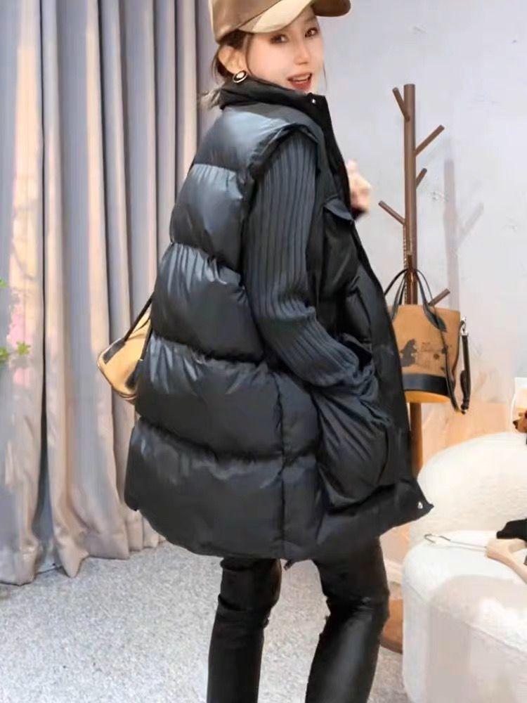 Produtos europeus gola alta pesado algodão para baixo colete outono e inverno roupas femininas grosso quente longo algodão jaqueta colete casaco maré