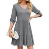 Amazon Europa e América Comércio Exterior Transfronteiriço 2025 Primavera e Verão Manga Solta Decote em V Plissado Vestido com Babados Feminino em estoque