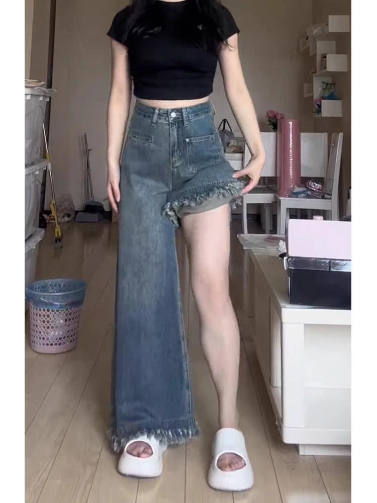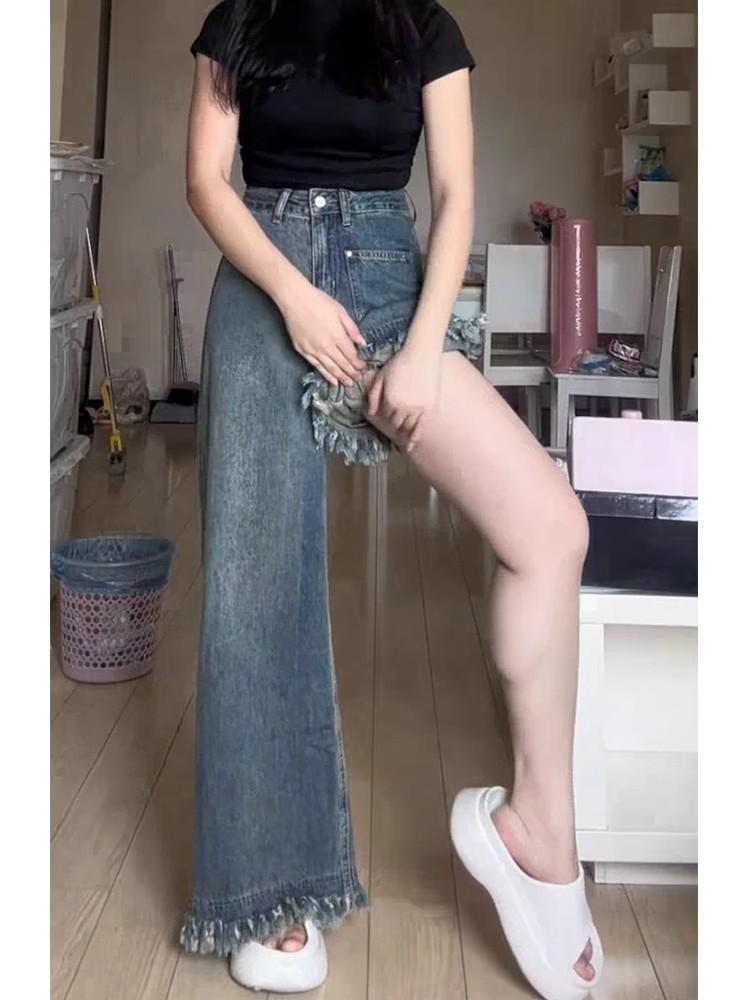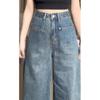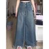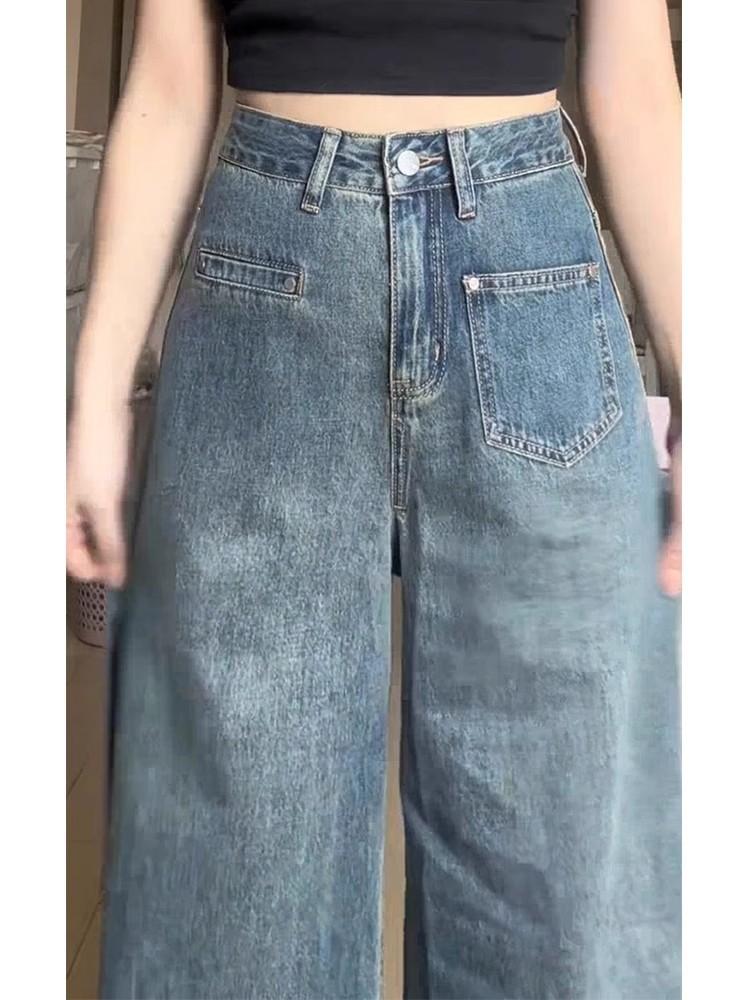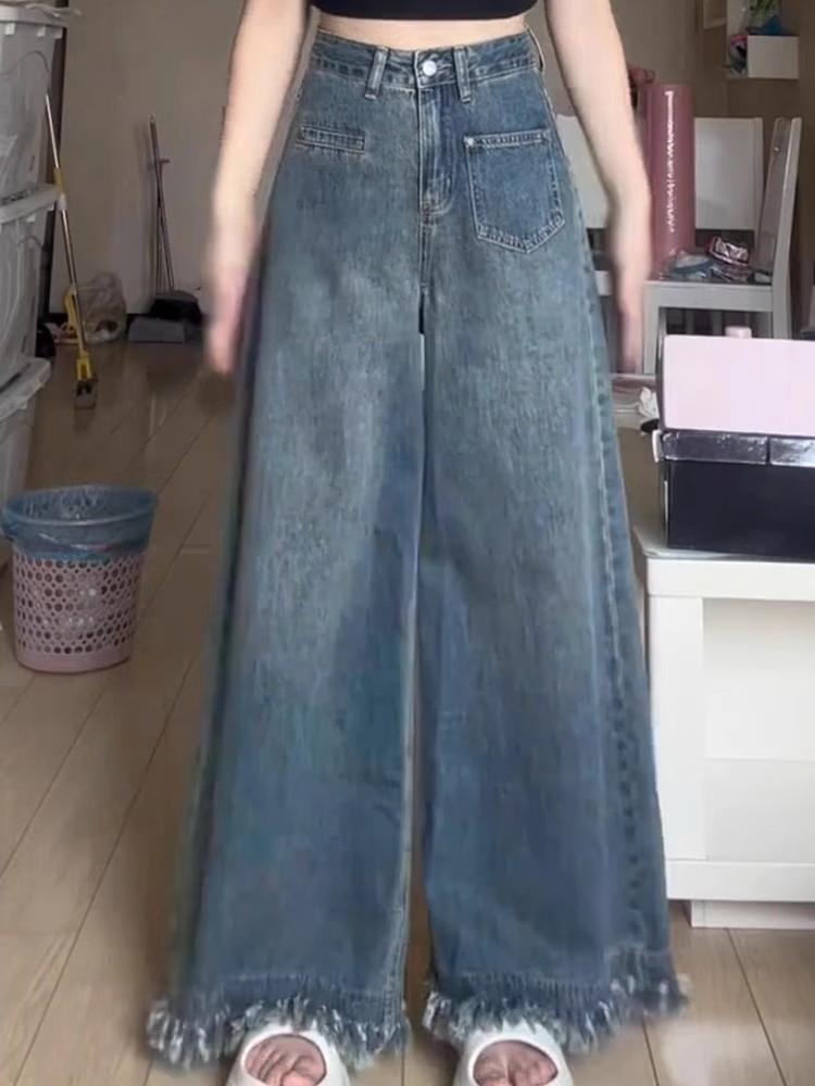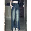 Calça jeans solta retrô Rust Dipped feminina plus size outono menina gordinha emagrecimento em forma de pêra cintura alta perna larga