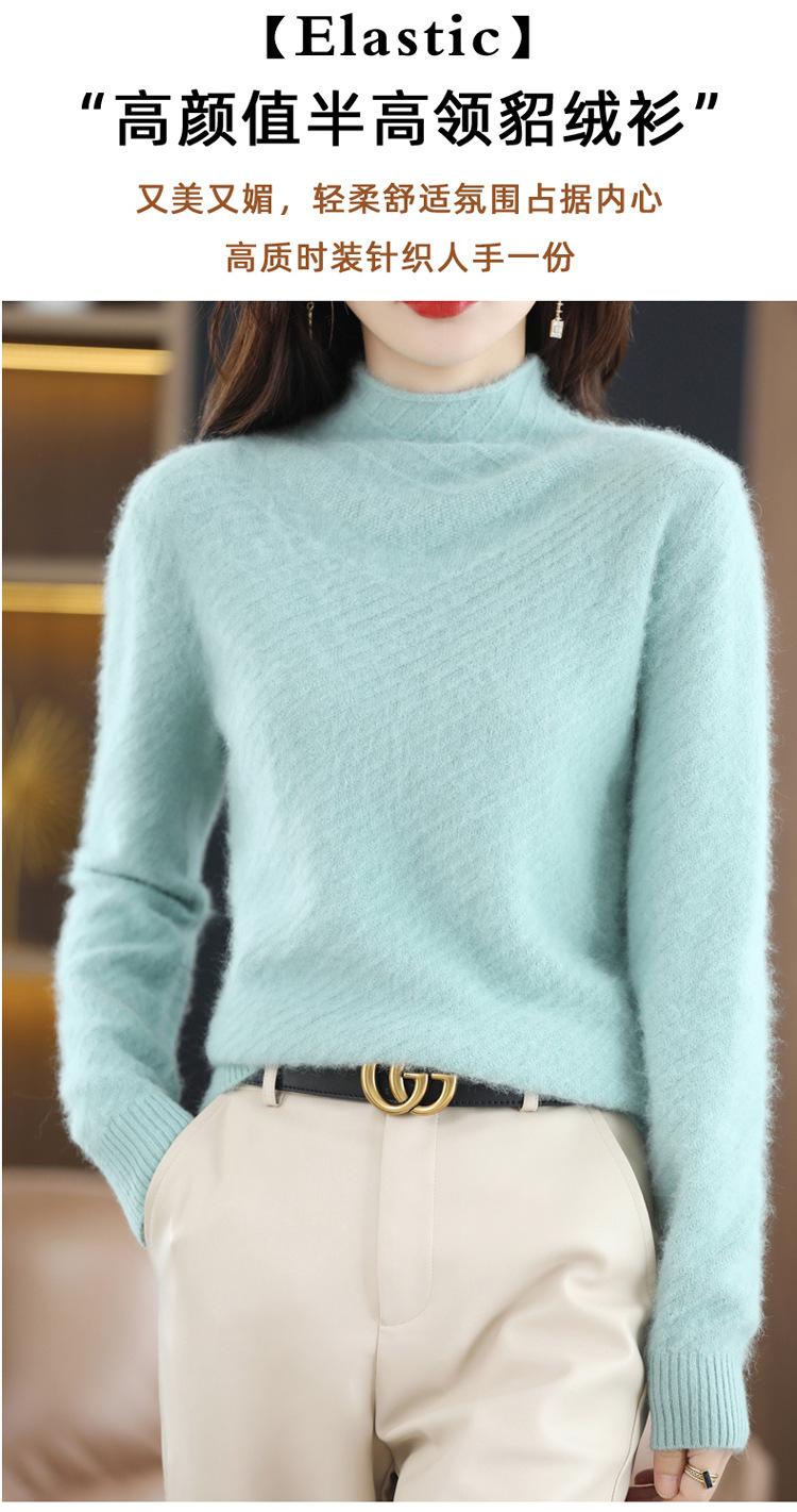 2024 Outono e Inverno Nova Chegada Mink Sweater Feminino Meia-gola Alta Pulôver Solto Cor Sólida Pulôver Base de Lã Suéter Suéter de Malha
