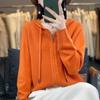 Casaco de lã estilo americano com capuz e zíper, suéter feminino, outono e inverno, curto, espesso, forrado de lã, design pequeno, cardigan