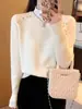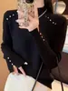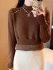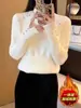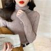 Suéter feminino de gola alta com forro de lã interna, grosso, inverno, peça única, veludo, estilo ocidental, quente, base, camisa para mulheres