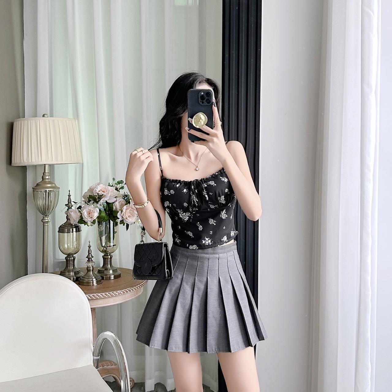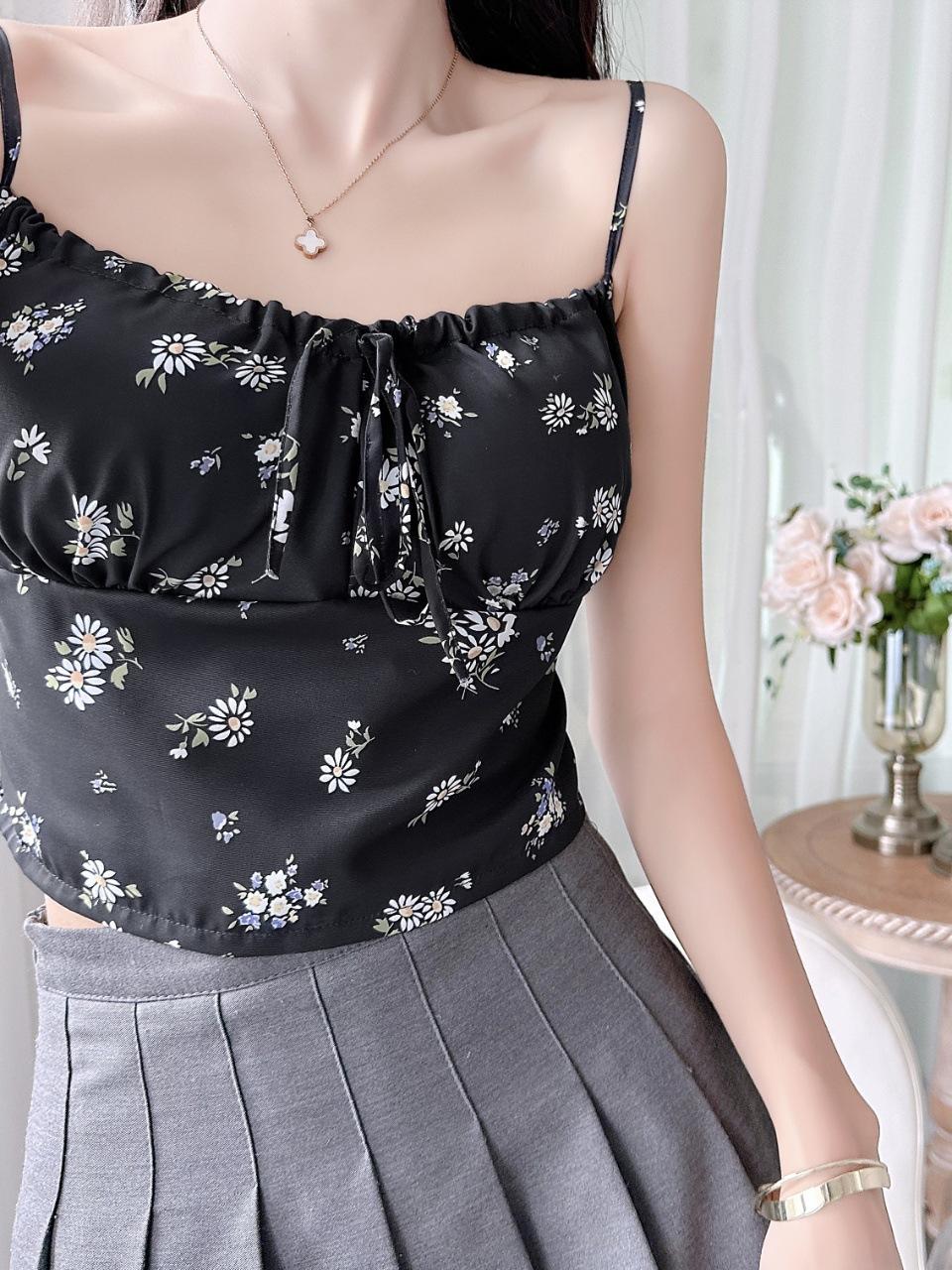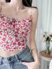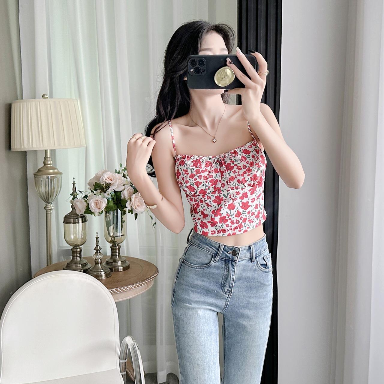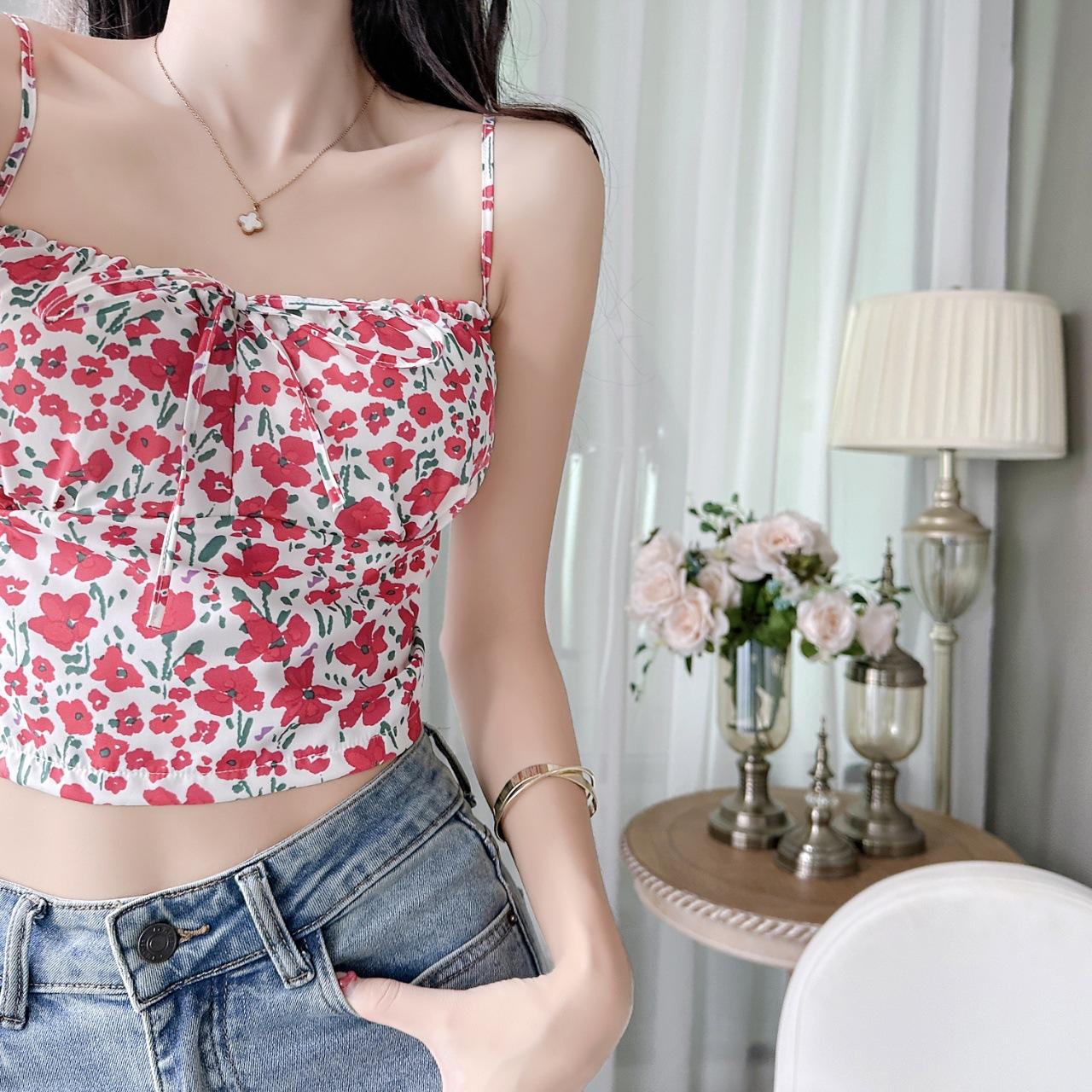 Sweet Spice Girl Pequeno Floral Sling Colete Feminino Pure Want Strap Estilo Férias Francesas Curto Top Vermelho Lindas Costas 8809
