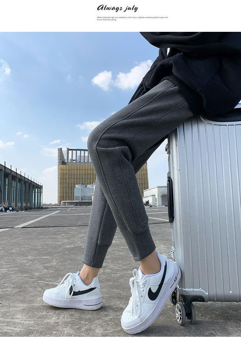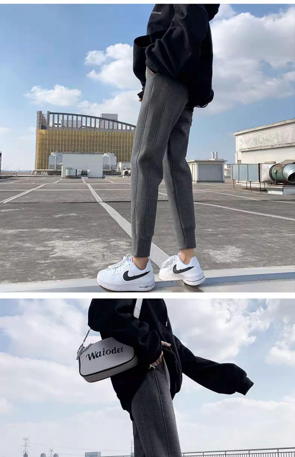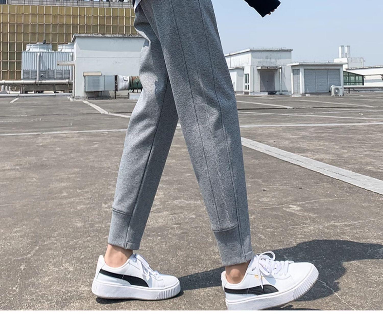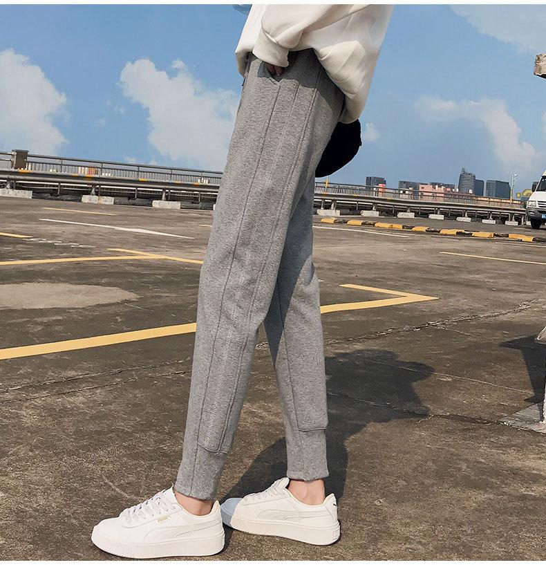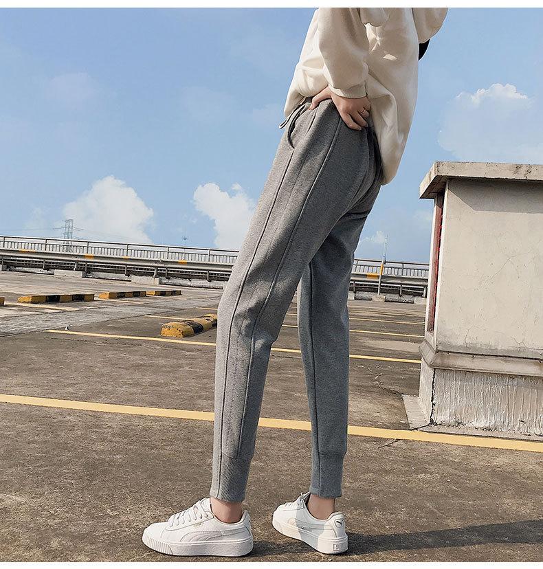 Calças esportivas cinza femininas outono e inverno leggings soltas pequenas casuais cintura alta calças harun wei 2024 novas