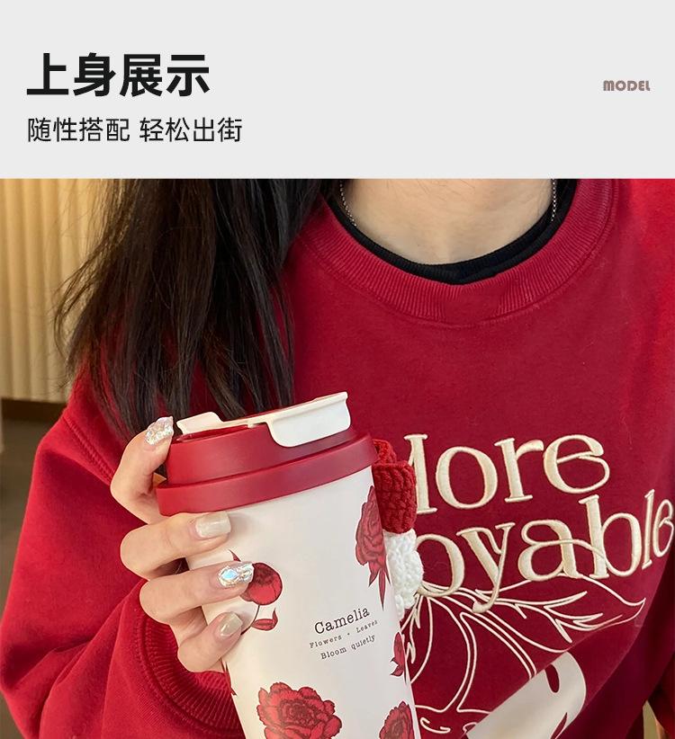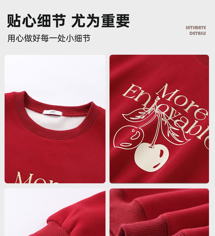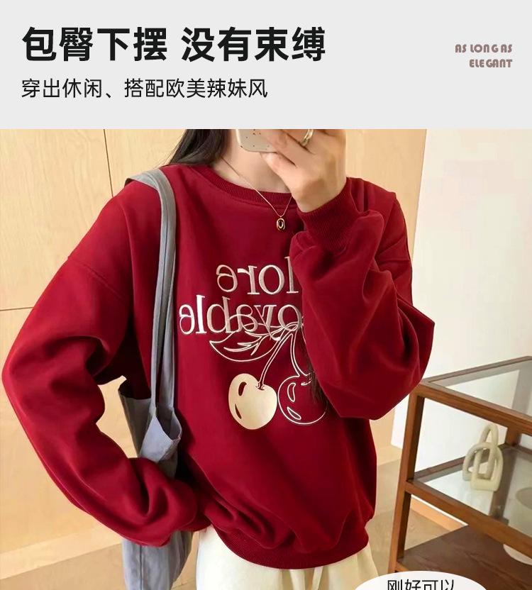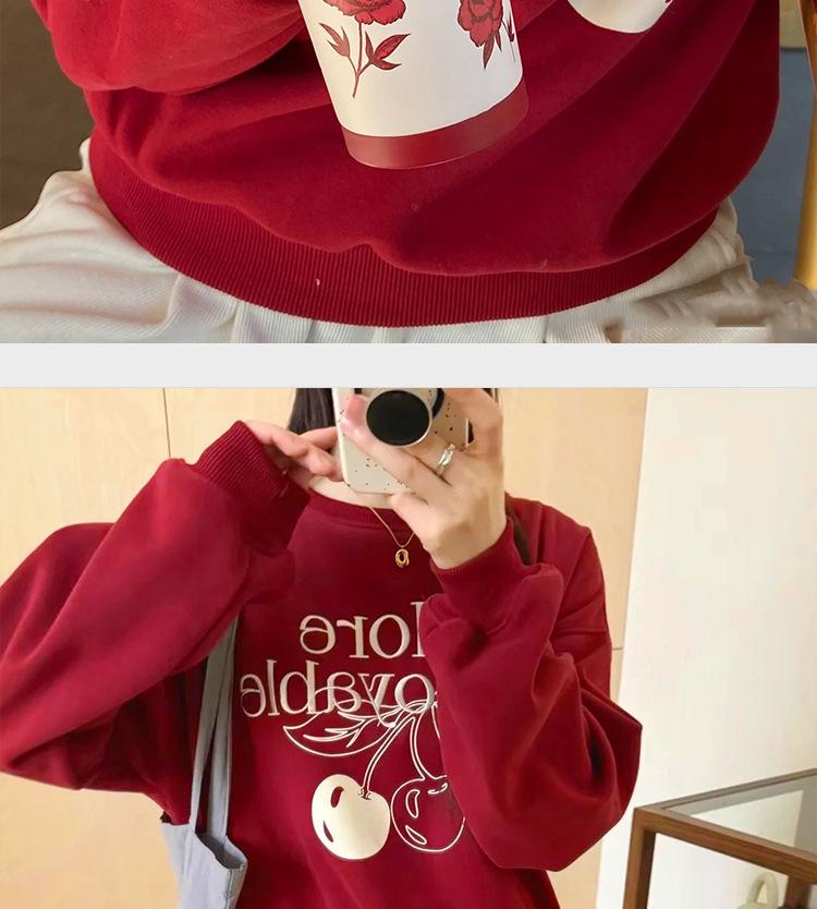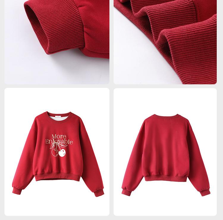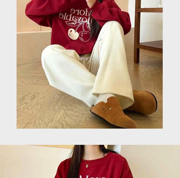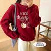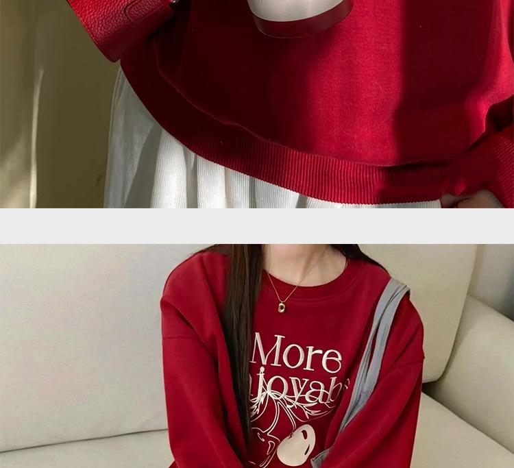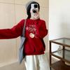 Moletom Vermelho Inverno Estilo Solto Preguiçoso Gola Redonda Feminino Outono e Inverno Estilo Quente 2025 Novo Top Aveludado Espesso É Tinta