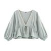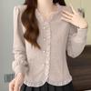 2025 Europeu e americano transfronteiriço novo feminino verão cor sólida all-match solto babados botão camisa de manga curta roupas femininas