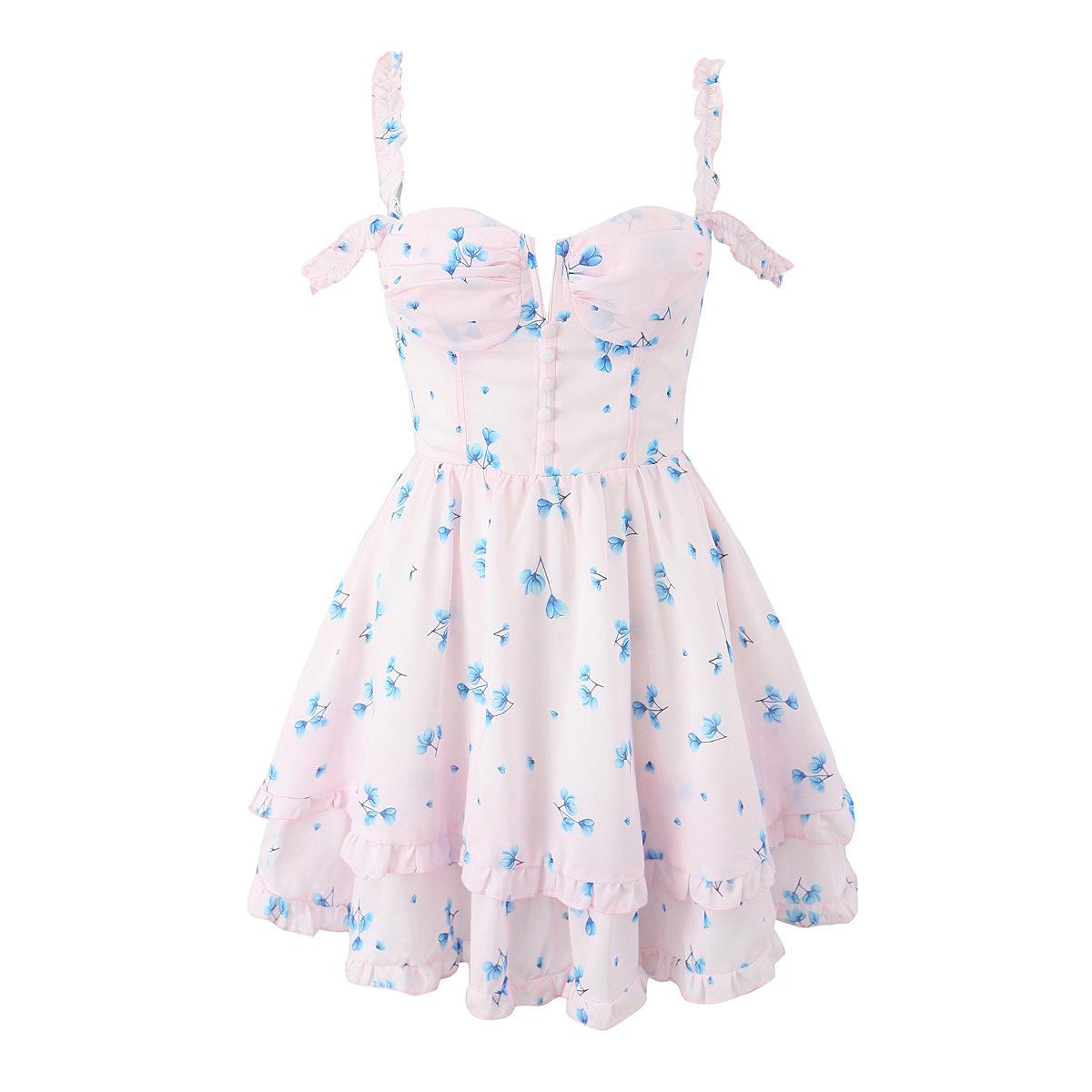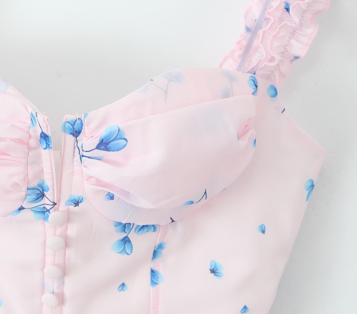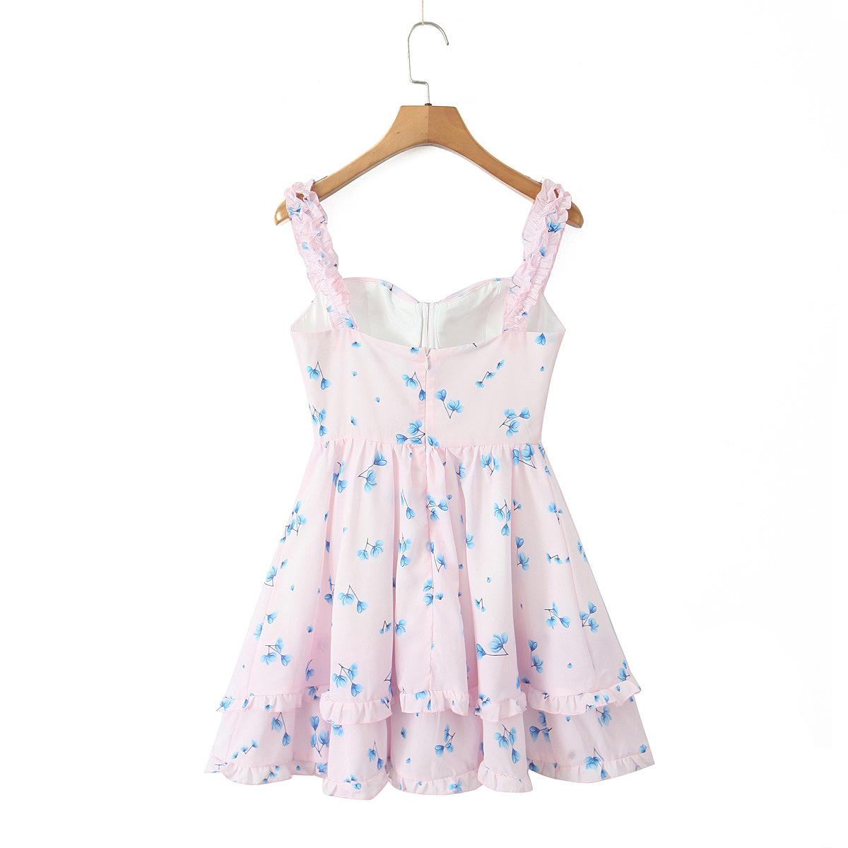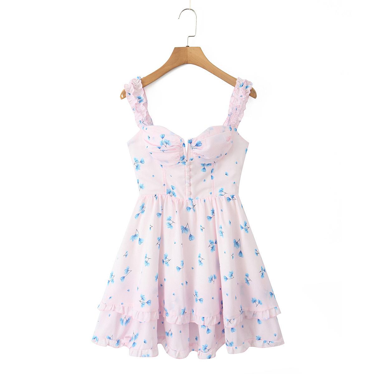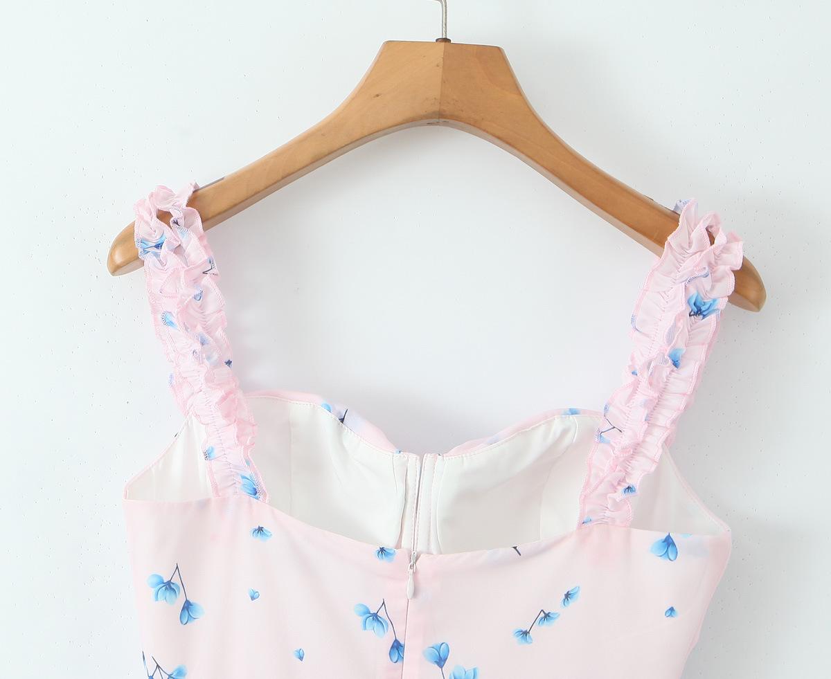 8004-estilo europeu e americano garota gostosa sexy saia de flor fina feminina 2024 outono novo vestido de alça fina