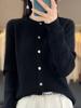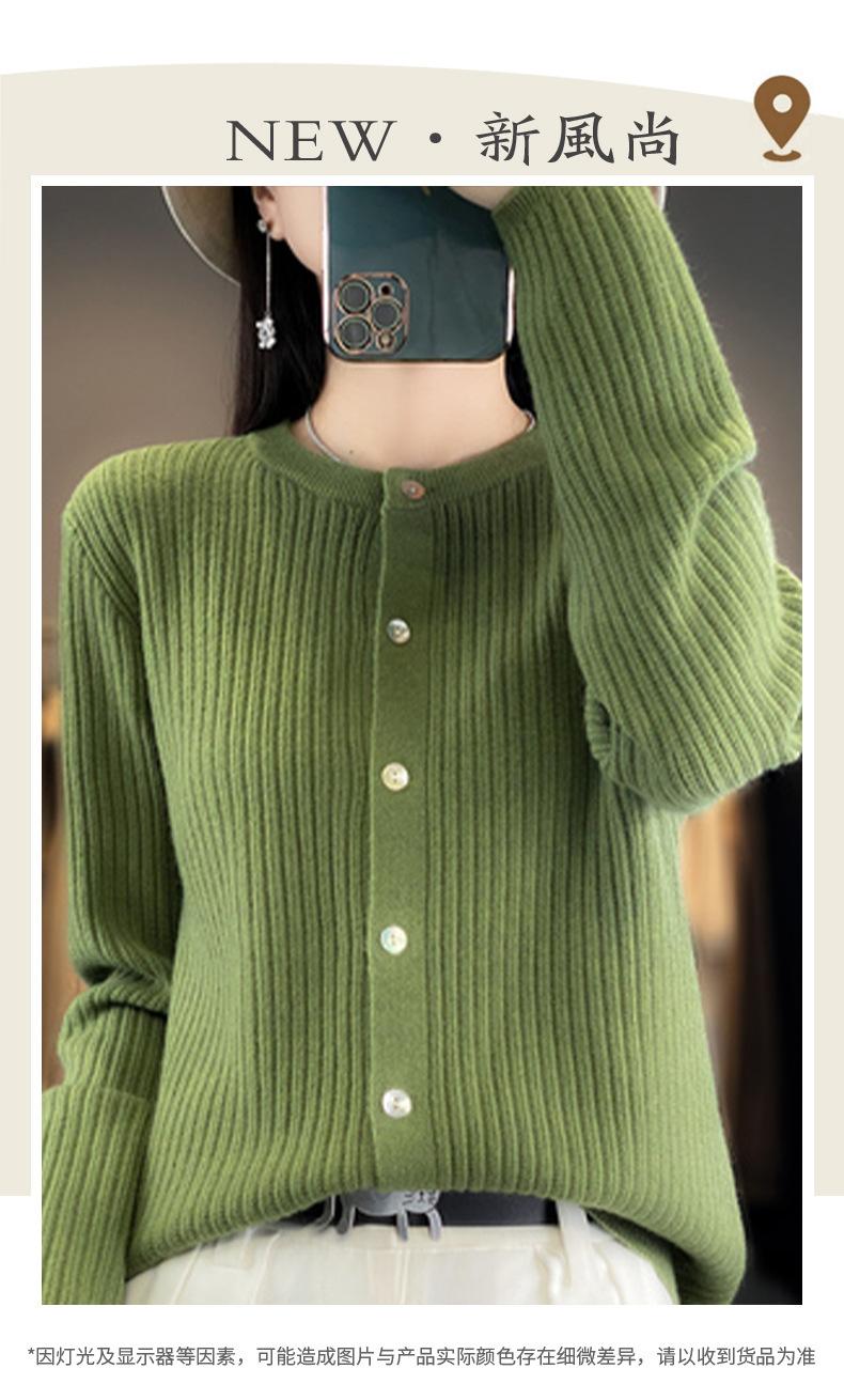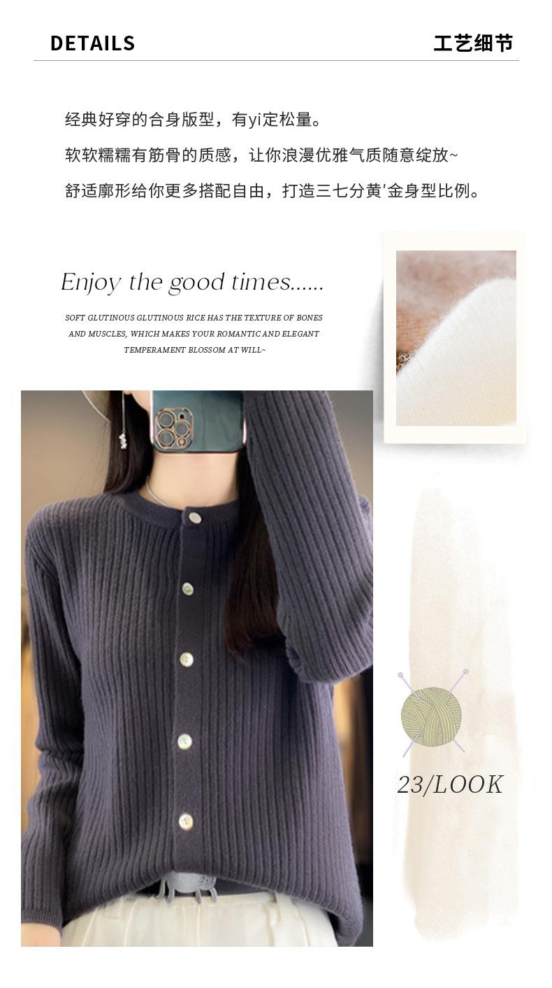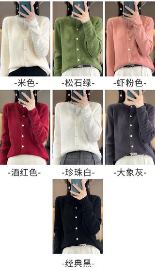 Casaco de malha de cor sólida para primavera e outono, novo casaco feminino com gola redonda, suéter elegante, manga comprida, coreano, top solto