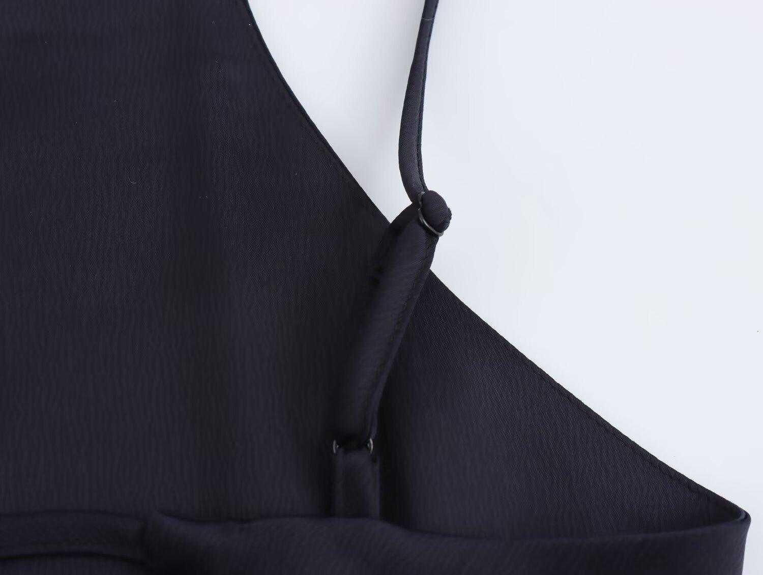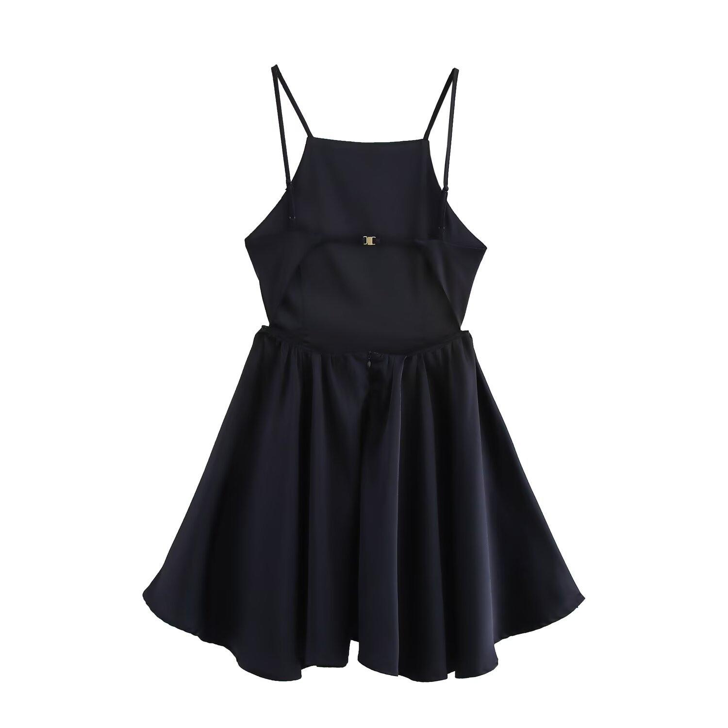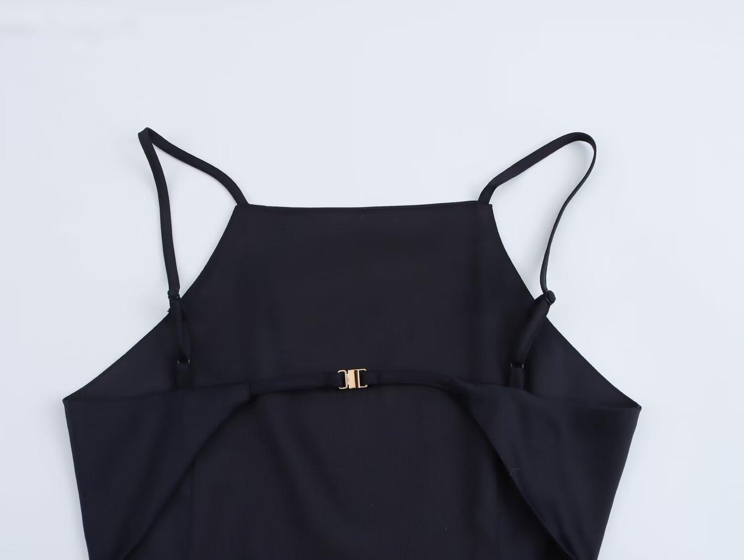 Cross-border europeu e americano moda coringa cor sólida sem costas vestido alça 2025 primavera novo B481831