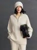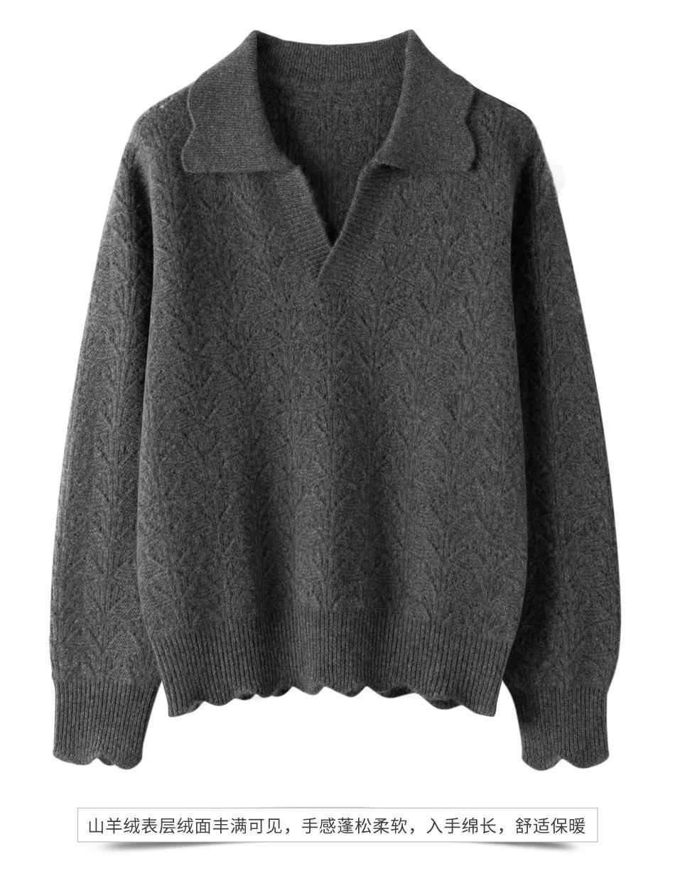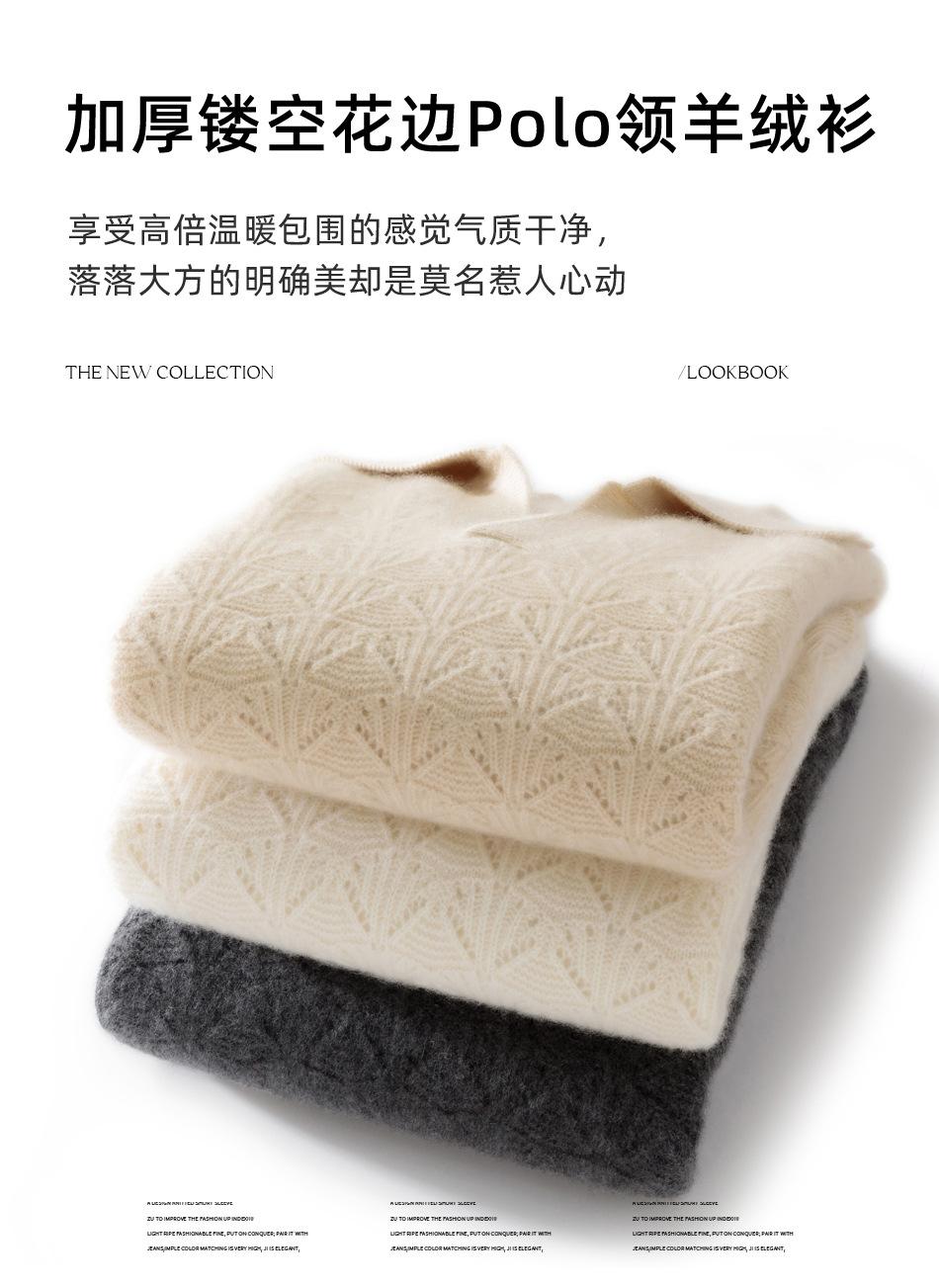 Outono e Inverno Novo Estilo Lapela Suéter Feminino de Caxemira Leve Suéter Grosso com Gola Polo Suéter de Tricô 100% Caxemira Roupa Íntima Quente Feminina