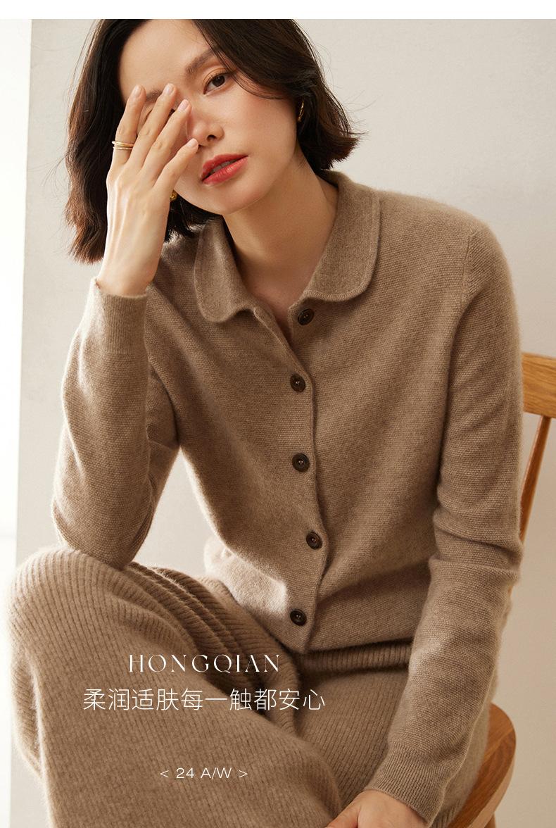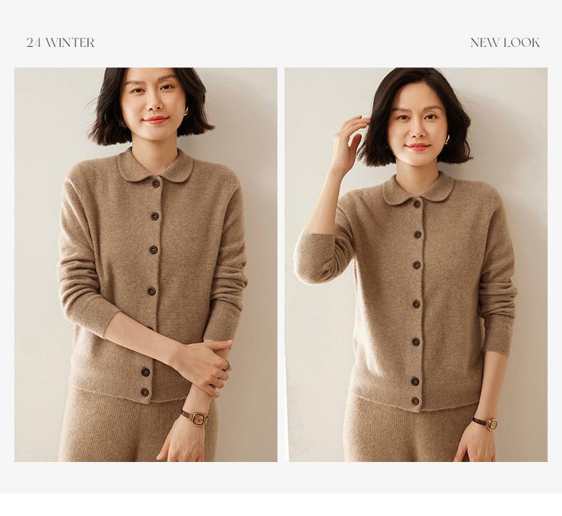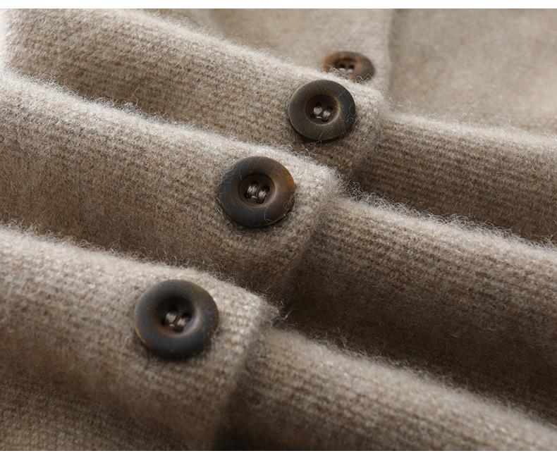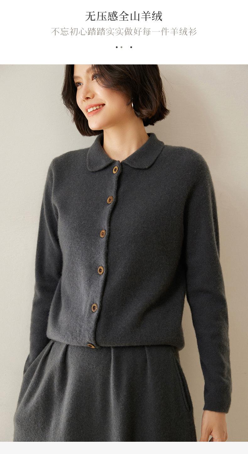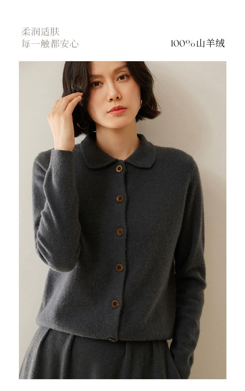Outono e inverno novo engrossado 100 cashmere cardigan feminino gola polo suéter malha base solta camisa
