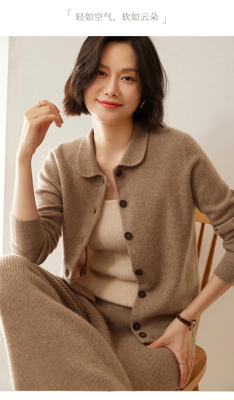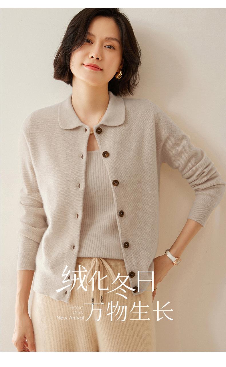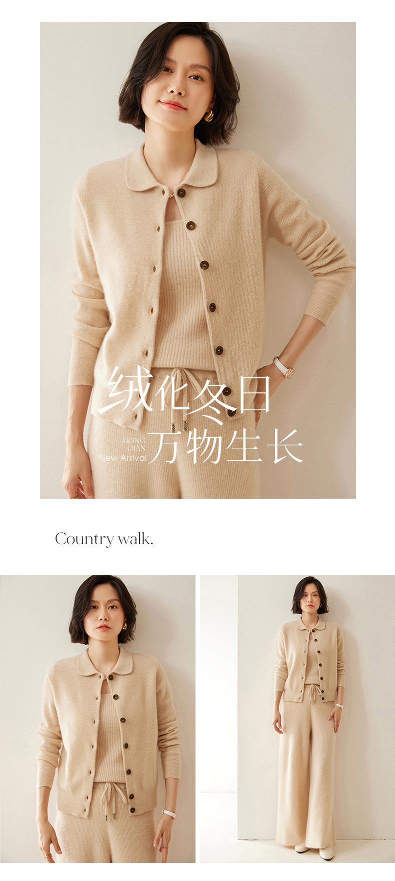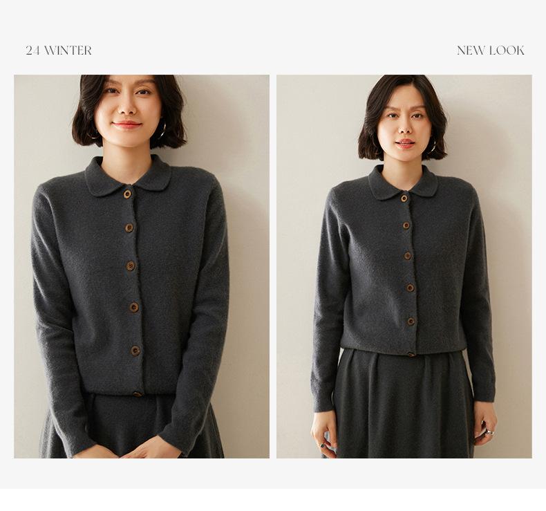Outono e inverno novo engrossado 100 cashmere cardigan feminino gola polo suéter malha base solta camisa