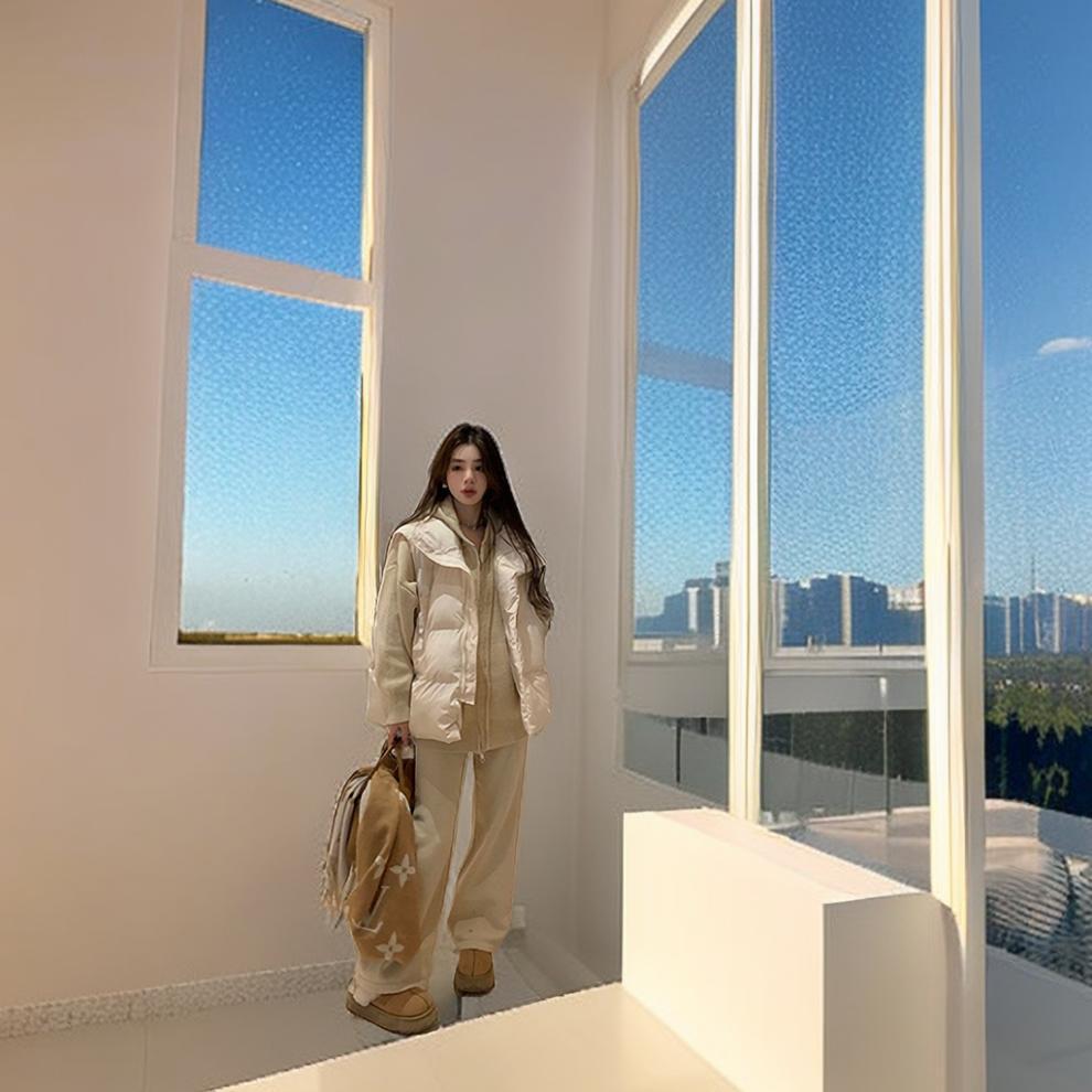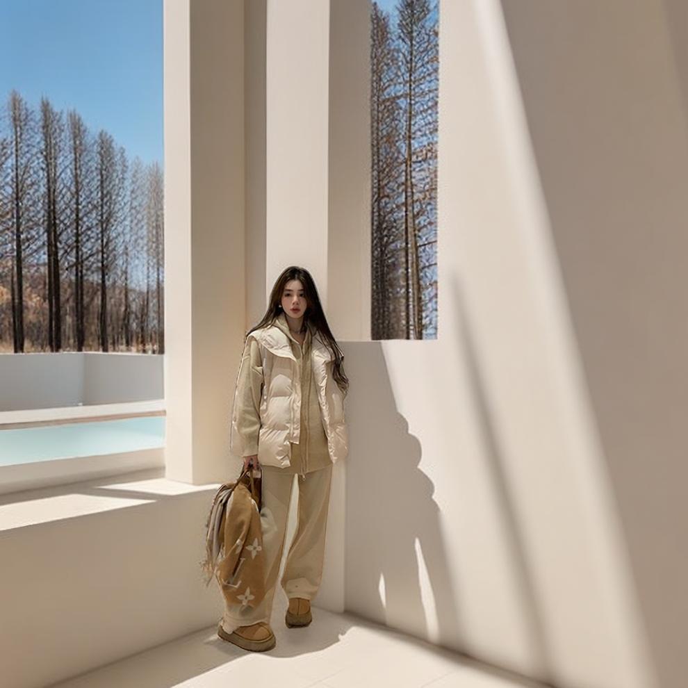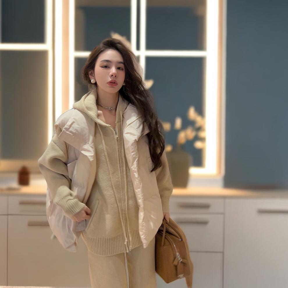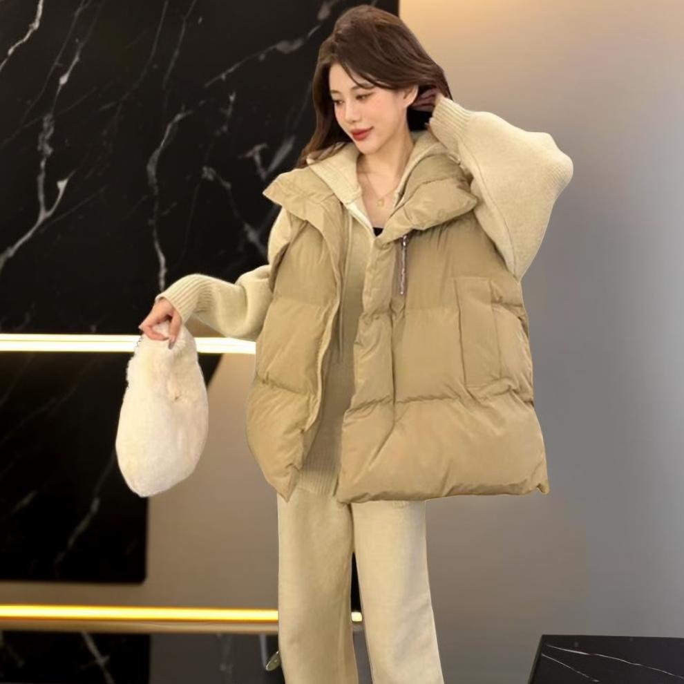 G888# vest cotton-padded jacket (creamy-white)-machine washable