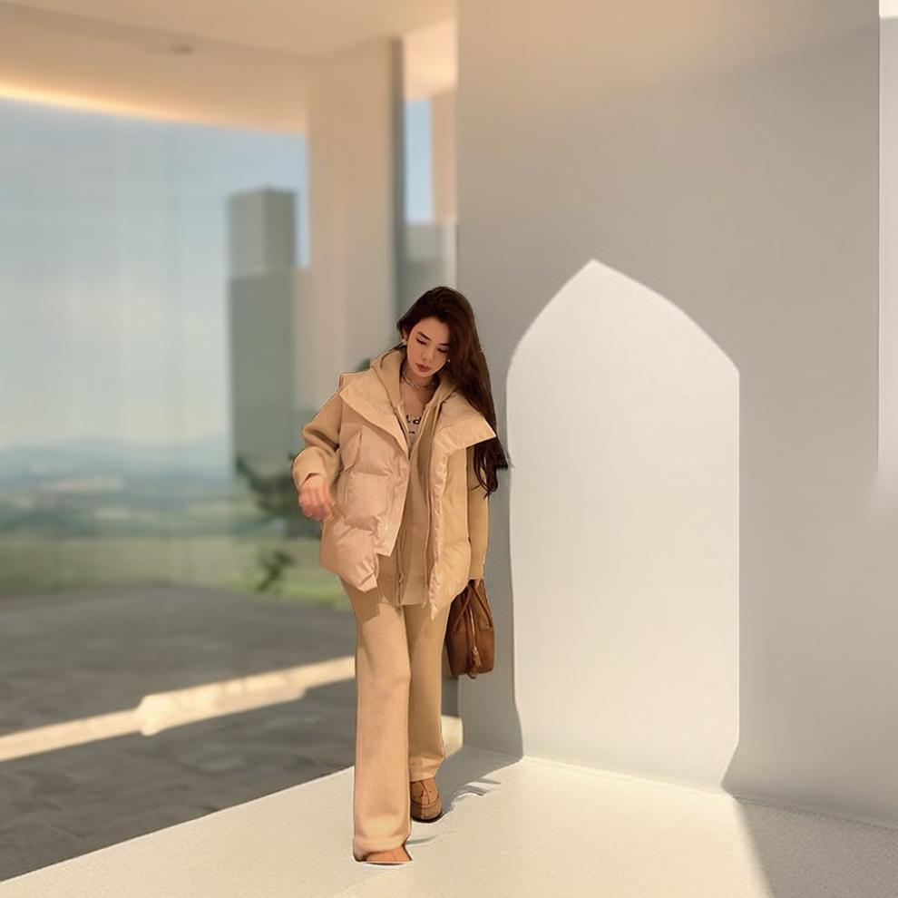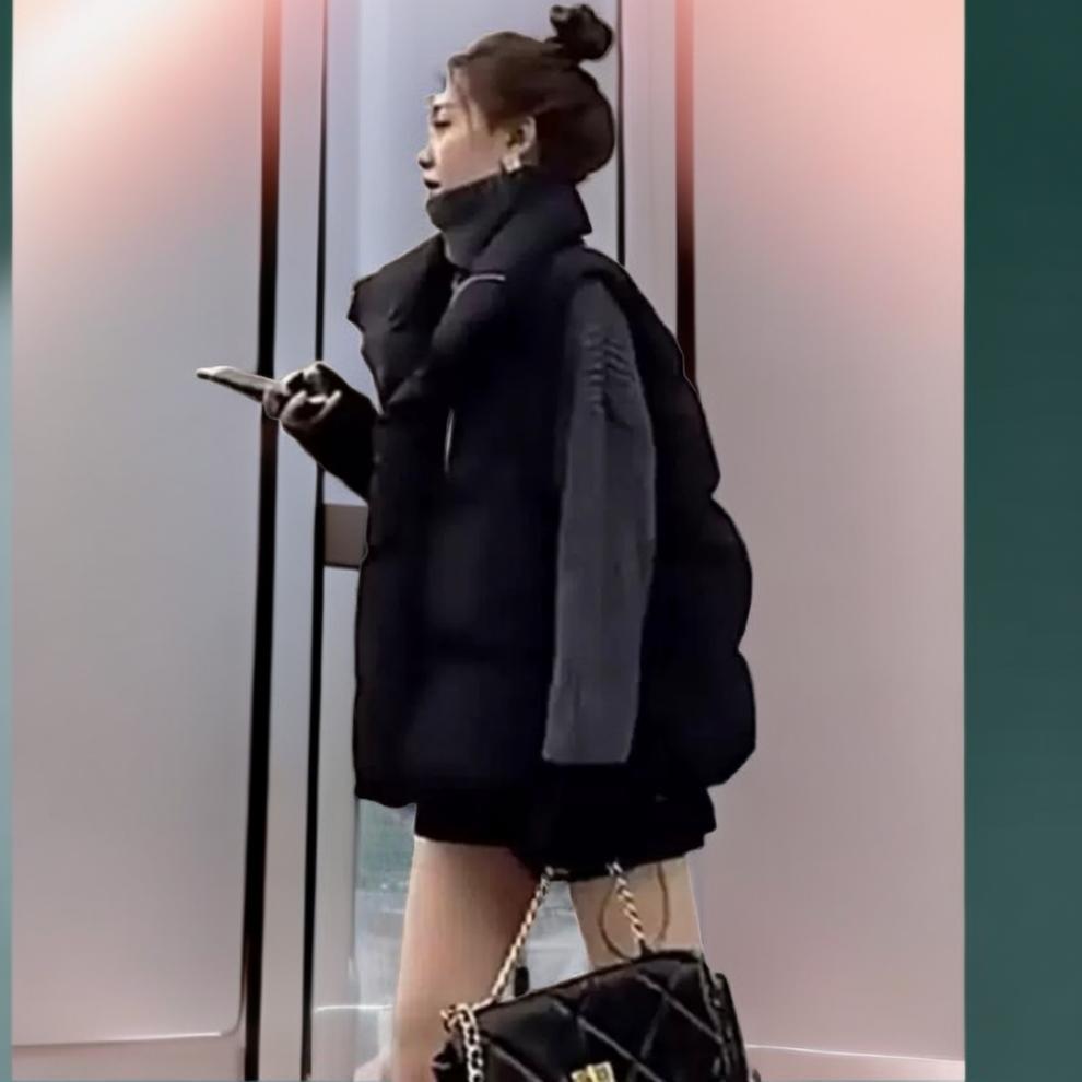 Down Cotton Cotton Clothes All-match Elegant Socialite Cotton-padded Jacket Colete Feminino Outono e Inverno Estilo Europeu Colete Feminino Colete