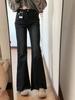 Plus Size Vintage Micro-La Jeans Feminino Outono Nova menina gordinha Cintura Alta Elástico Slim-Fit Emagrecimento Ferradura Trompete Calças