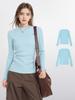Camisa de base de malha azul feminina, suéter de lã interno com ajuste fino, base justa, blusa de malha de manga comprida, inverno 2024