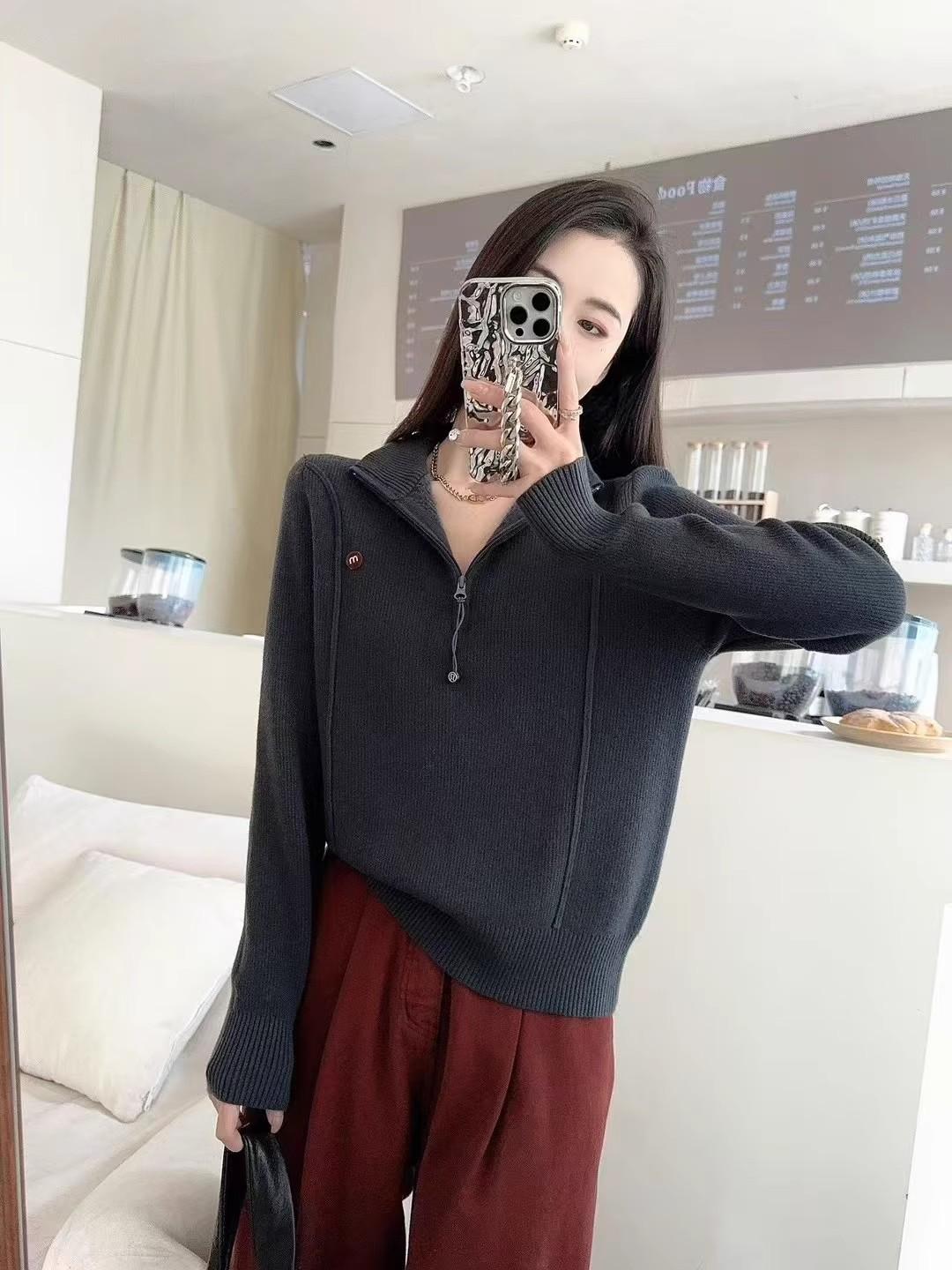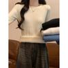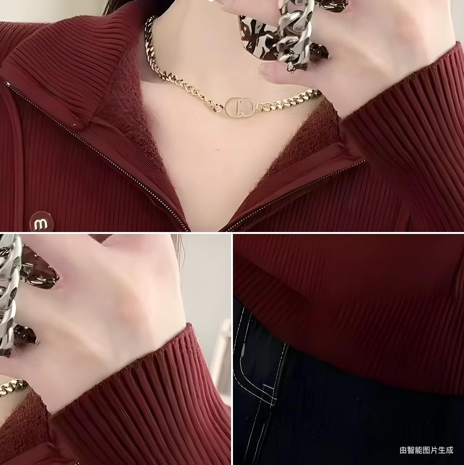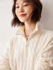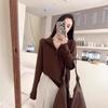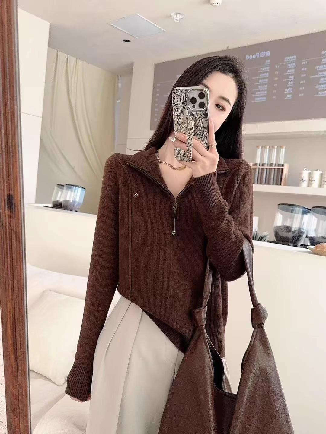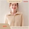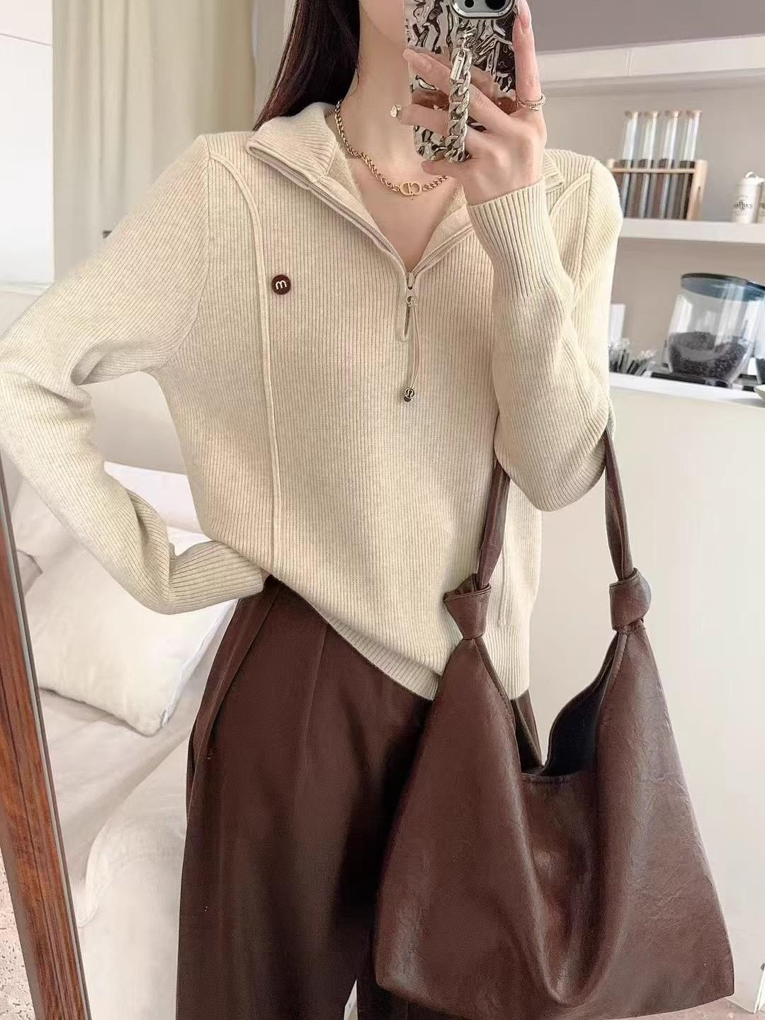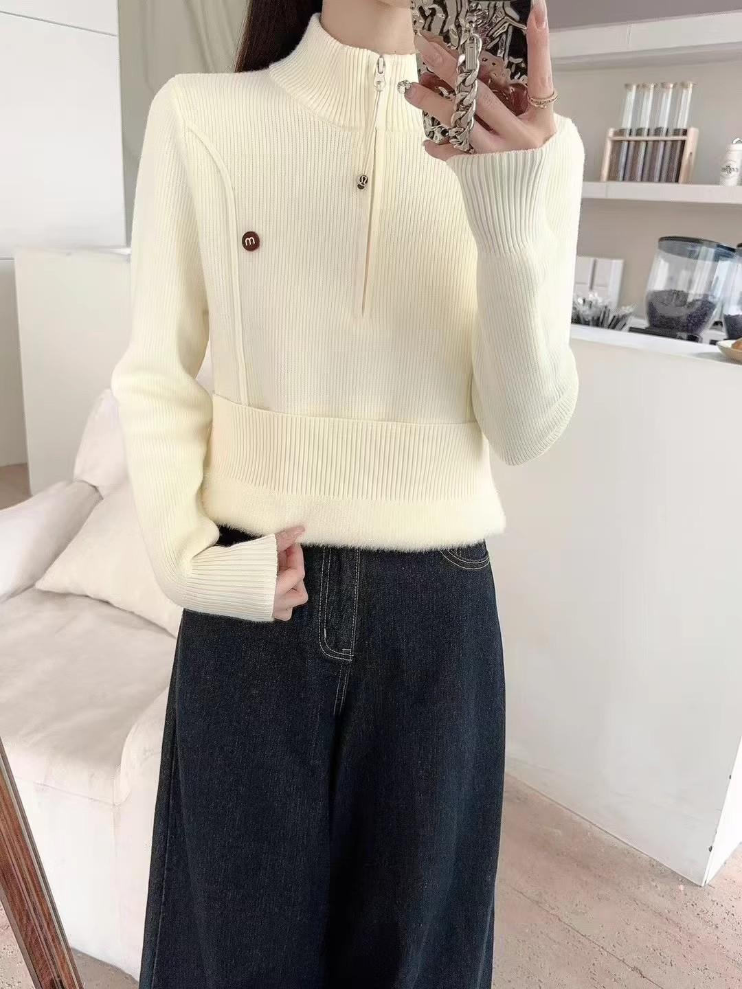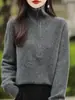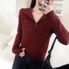 Suéter de malha de manga comprida espessado com forro de lã feminino outono e inverno novo interior quente de uma peça veludo meio zíper gola alta camisa base
