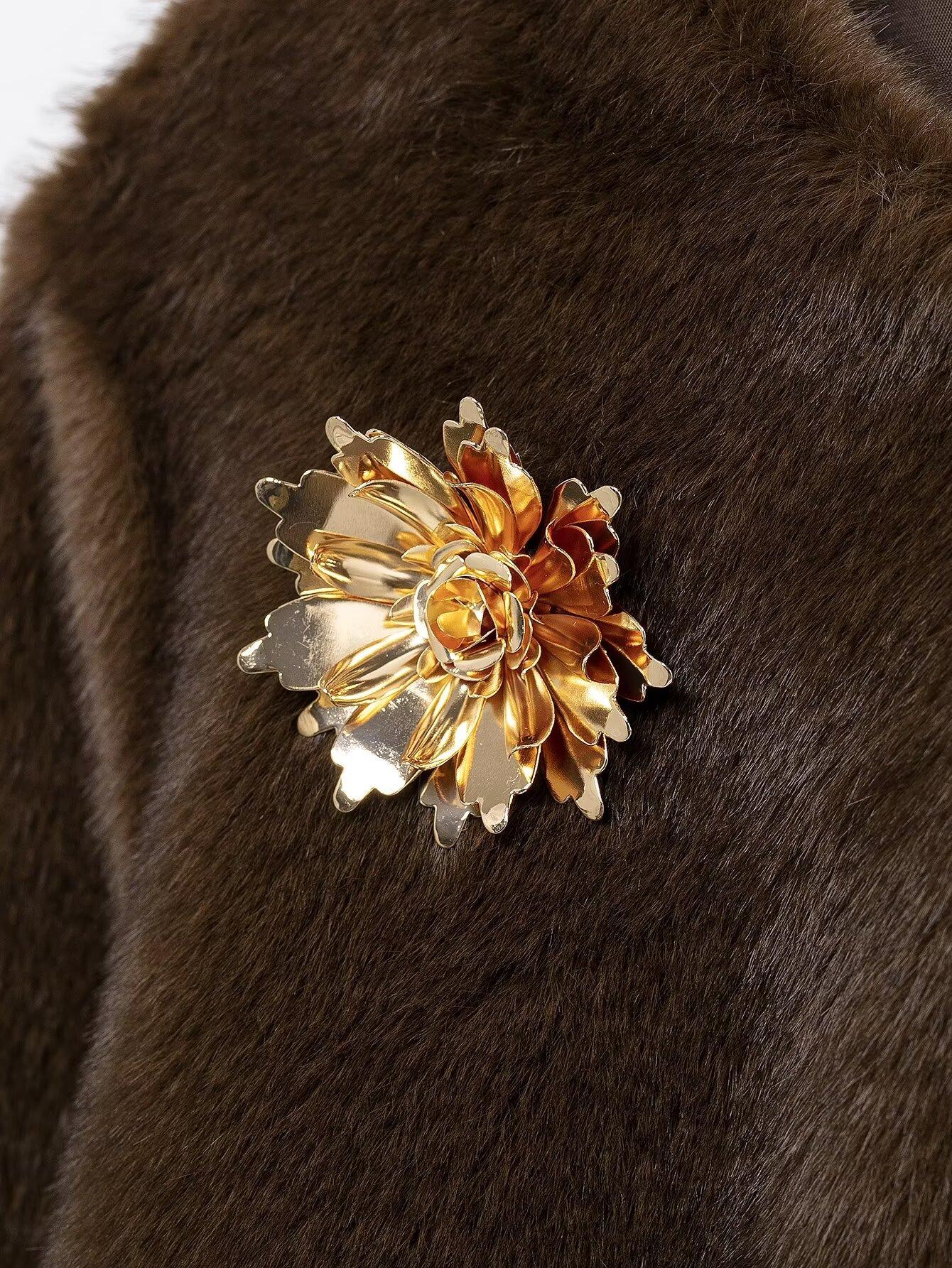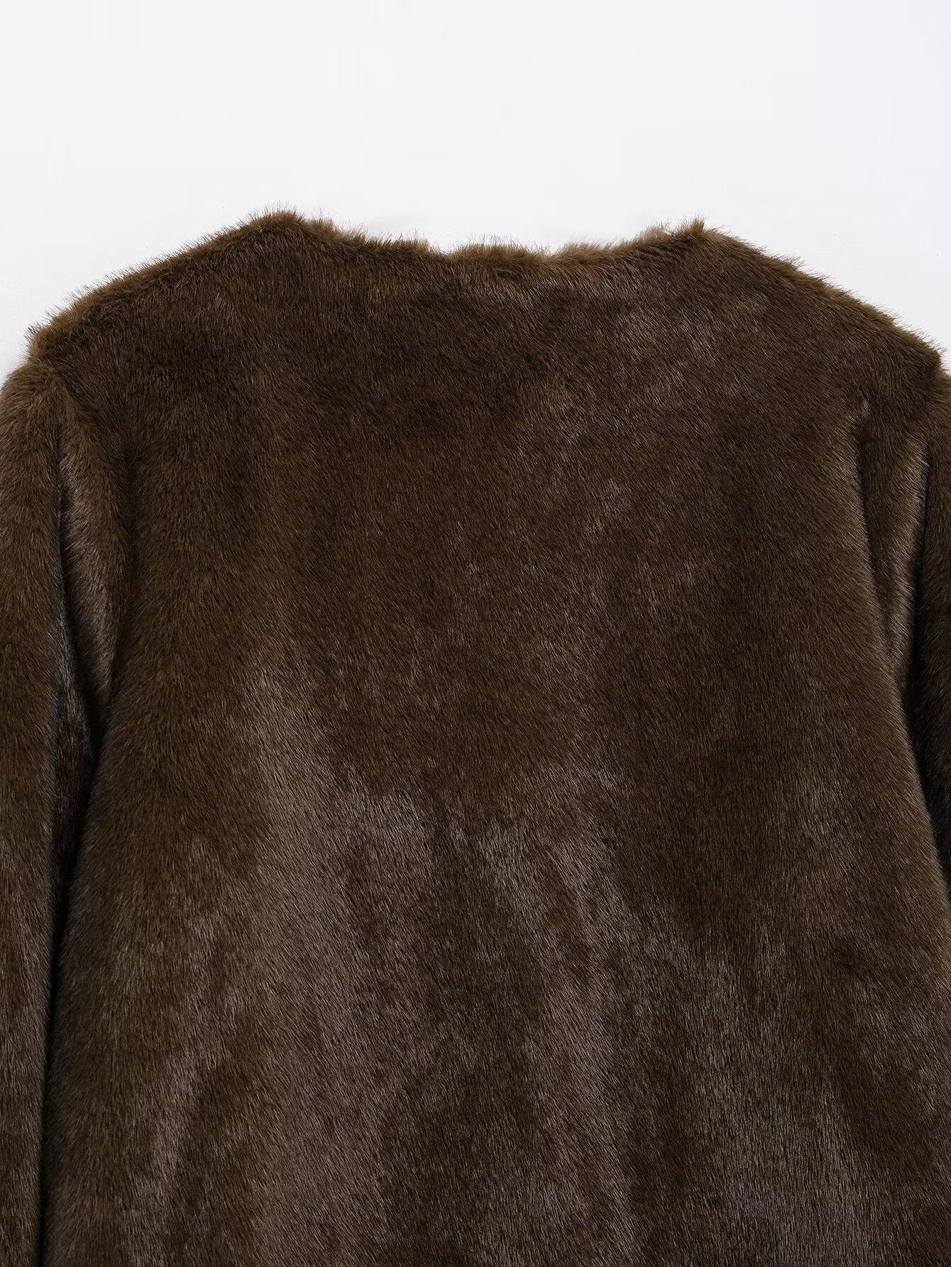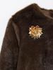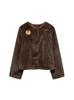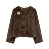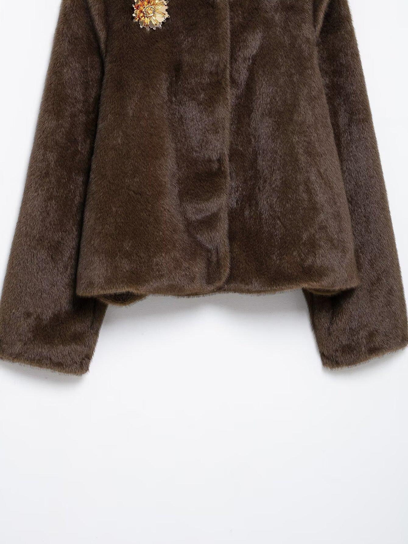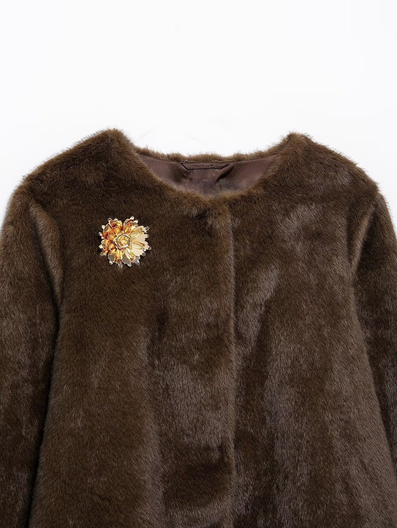 Cross-border europeu e americano feminino 2025 primavera novo gola redonda broche decoração efeito pele sintética casaco 4369100