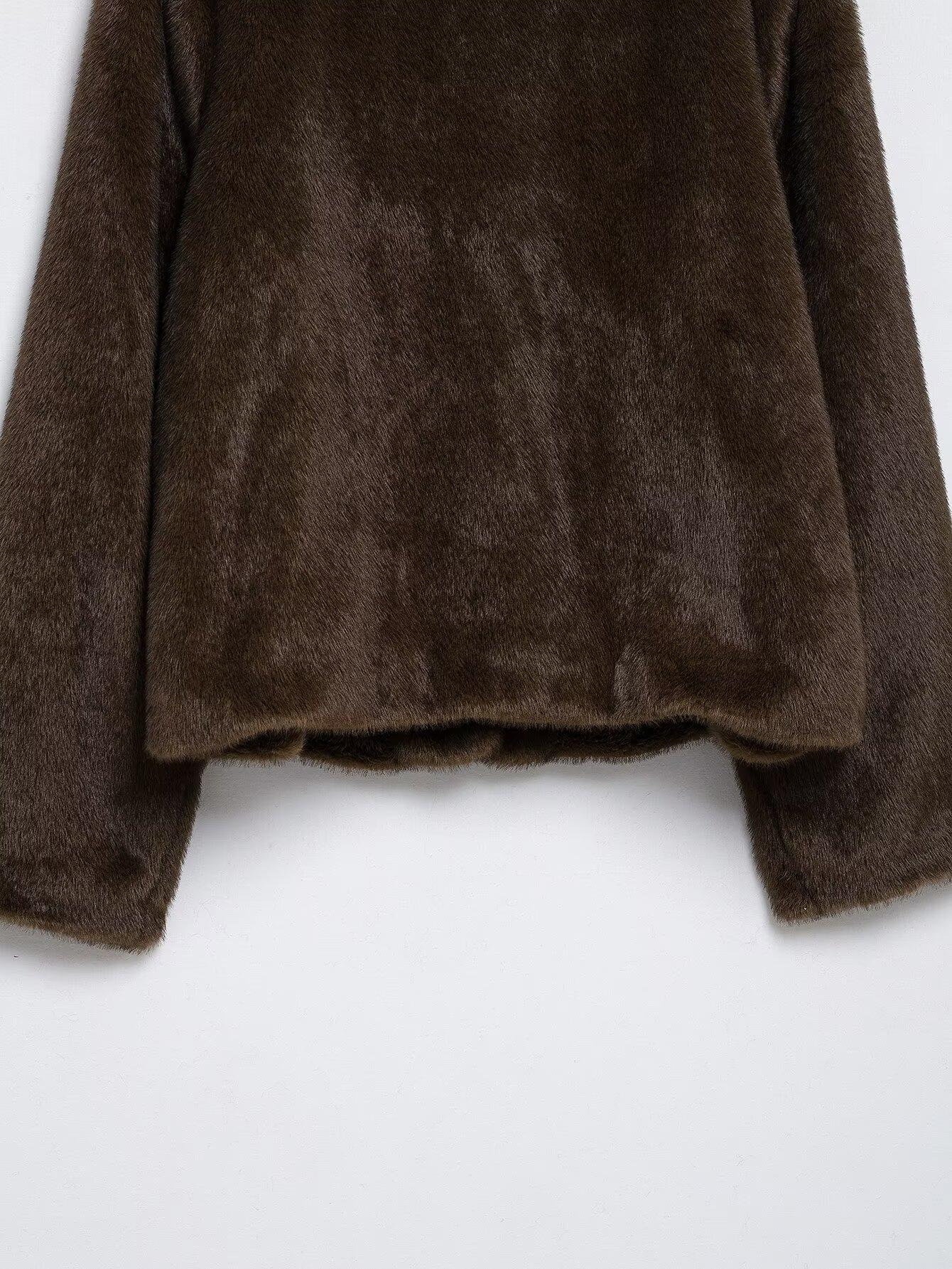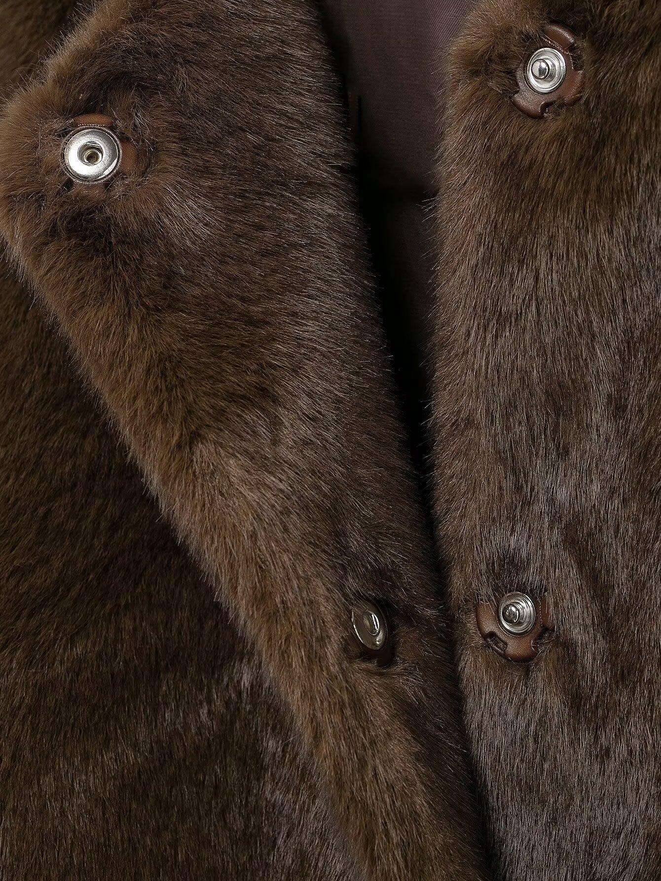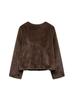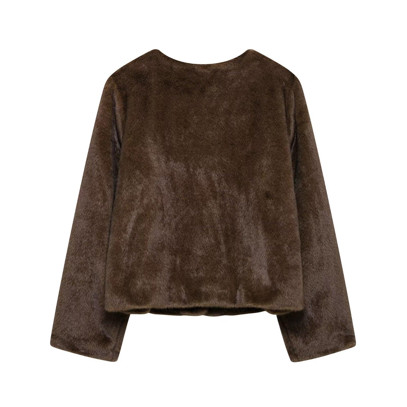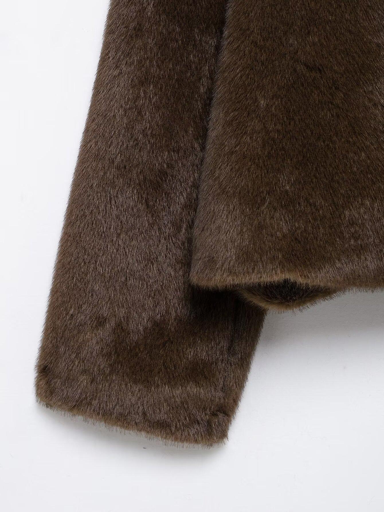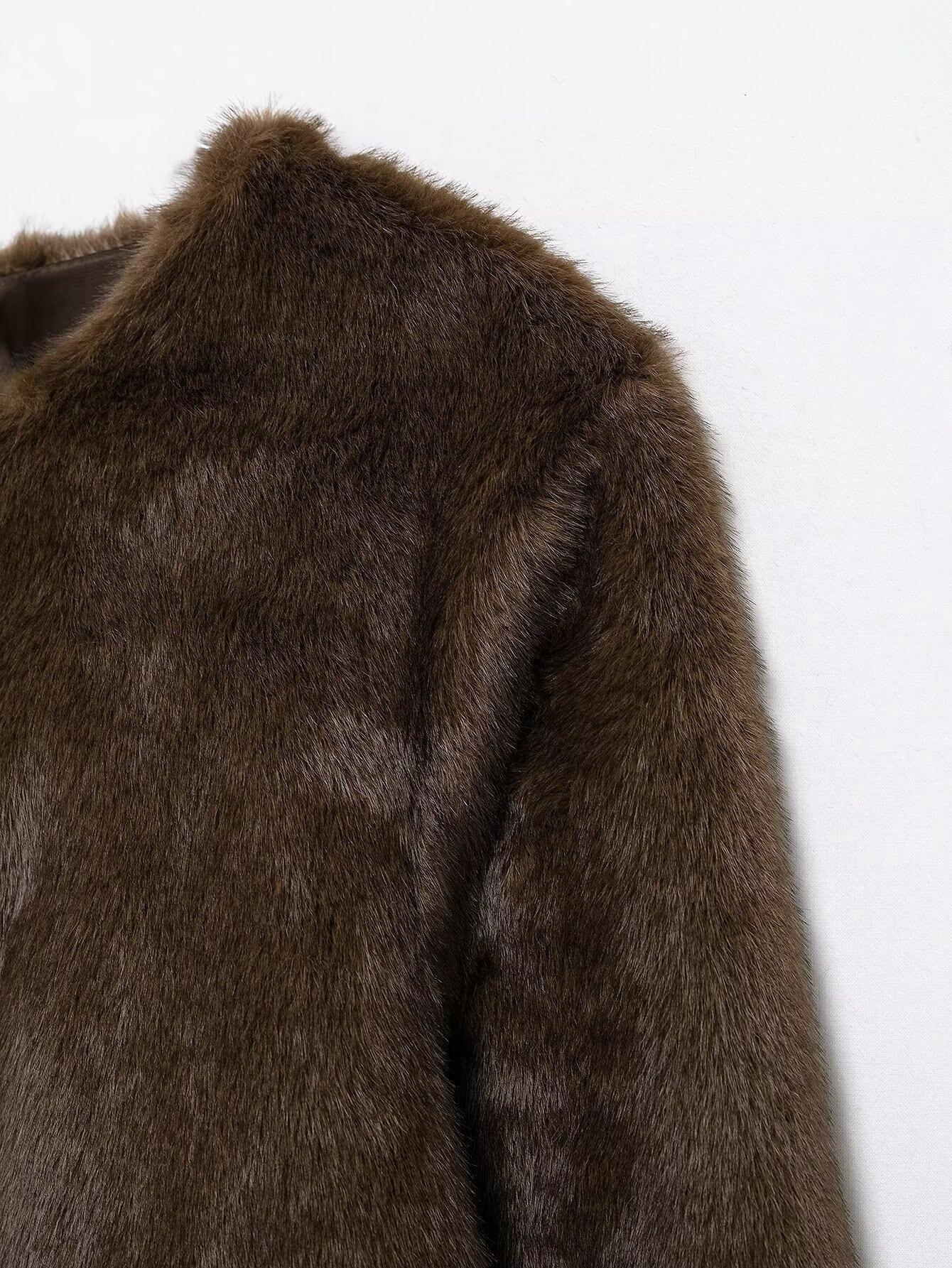 Cross-border europeu e americano feminino 2025 primavera novo gola redonda broche decoração efeito pele sintética casaco 4369100