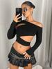 Roupa Feminina Transfronteiriça 2024 Outono e Inverno Novo Estilo Europeu e Americano Ins Camiseta Gola Inclinada Assimétrica Ombro a Ombro Y2K Top de Manga Comprida