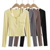 297-Suéter sexy de gola redonda estilo europeu e americano feminino 2024 outono nova garota gostosa slim falso dois cardigan top