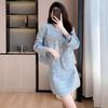 Terno Estilo Pequeno Fragrante para Mulheres Início da Primavera Vermelho Natal Veludo Top de Manga Comprida com um Conjunto Completo de Saias Bufantes de Bolo