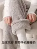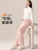 Calças quentes para mulheres grávidas, lã coral, forrada com lã, espessada, plus size, calças de pijama, quentes, sem estômago, calças para mulheres grávidas em casa