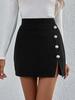 Moda Outono e Inverno Europeia e Americana Transfronteiriça Saia de Cintura Alta com Fenda Lateral Saia Feminina com Botão Decorativo A-Line Saia Quadril