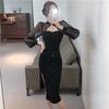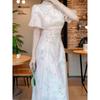 2025 verão novo estilo chinês sereia princesa pequena mosca manga vestido feminino xadrez quadril vestido