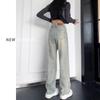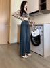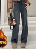 Calça jeans larga americana azul escuro feminina outono e inverno 2024 nova calça reta casual preguiçosa com forro de lã