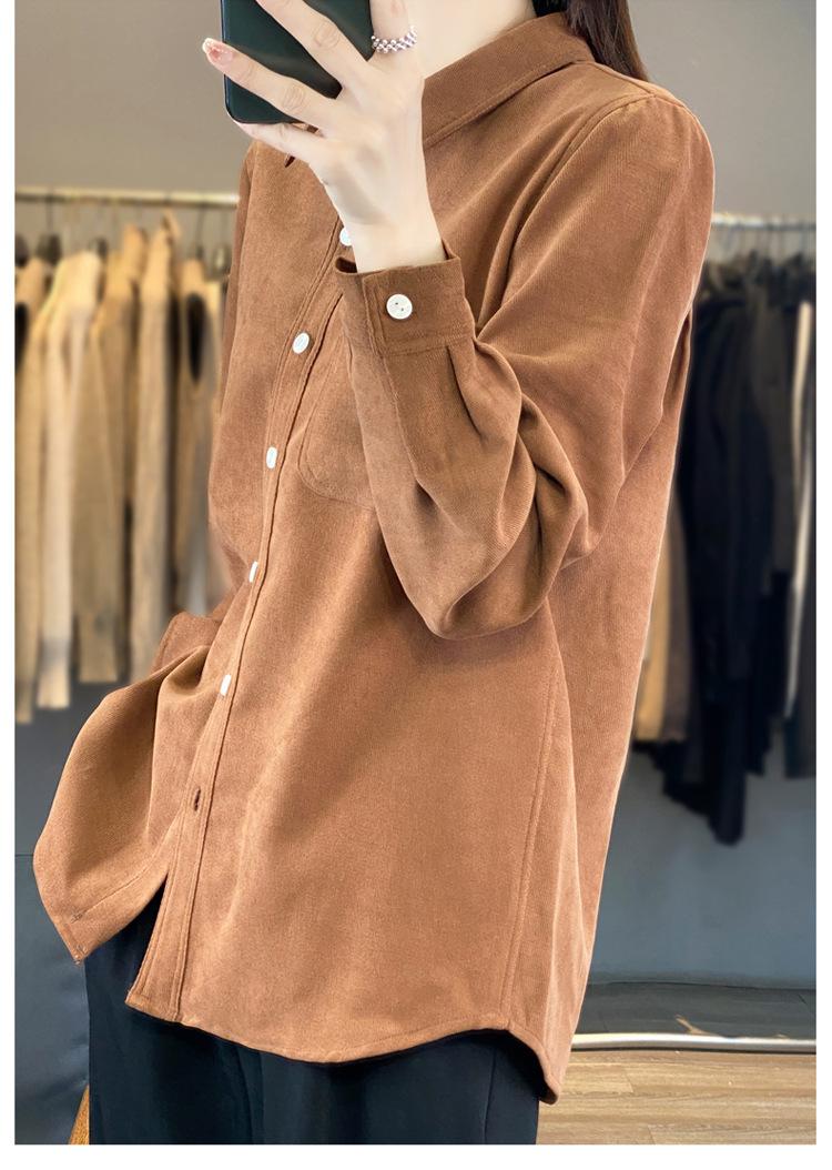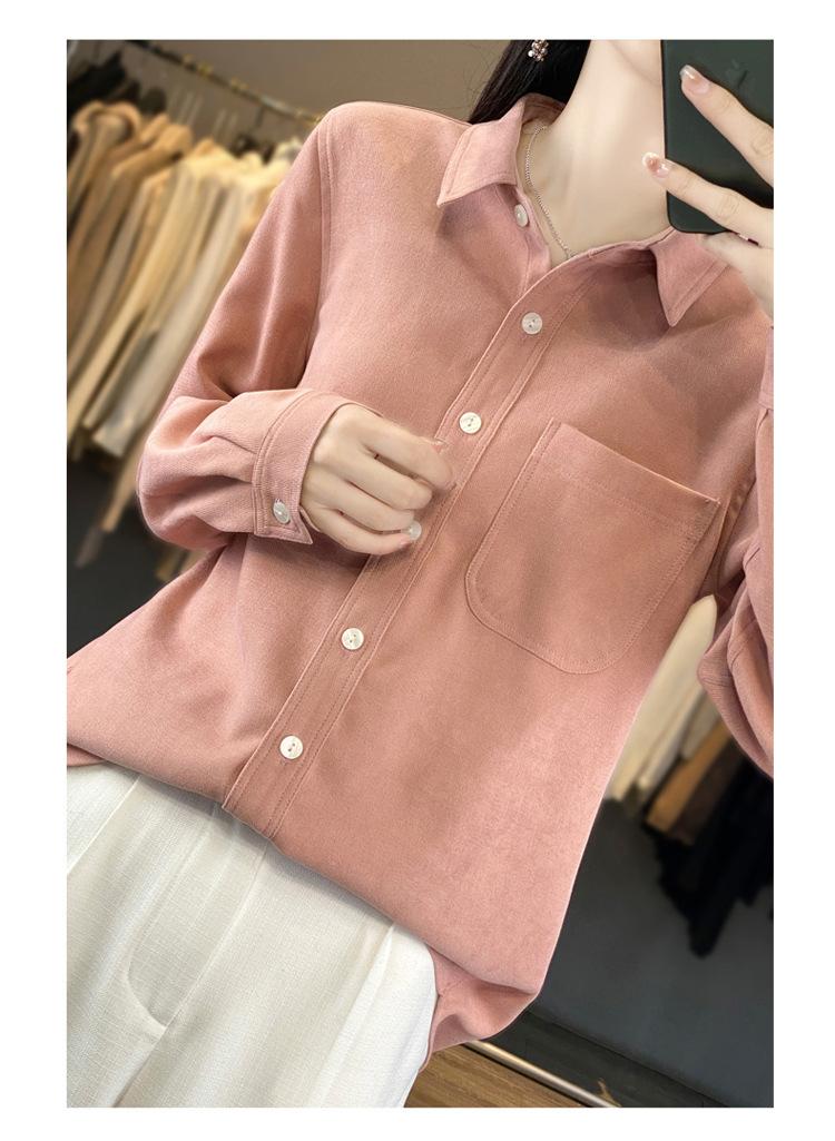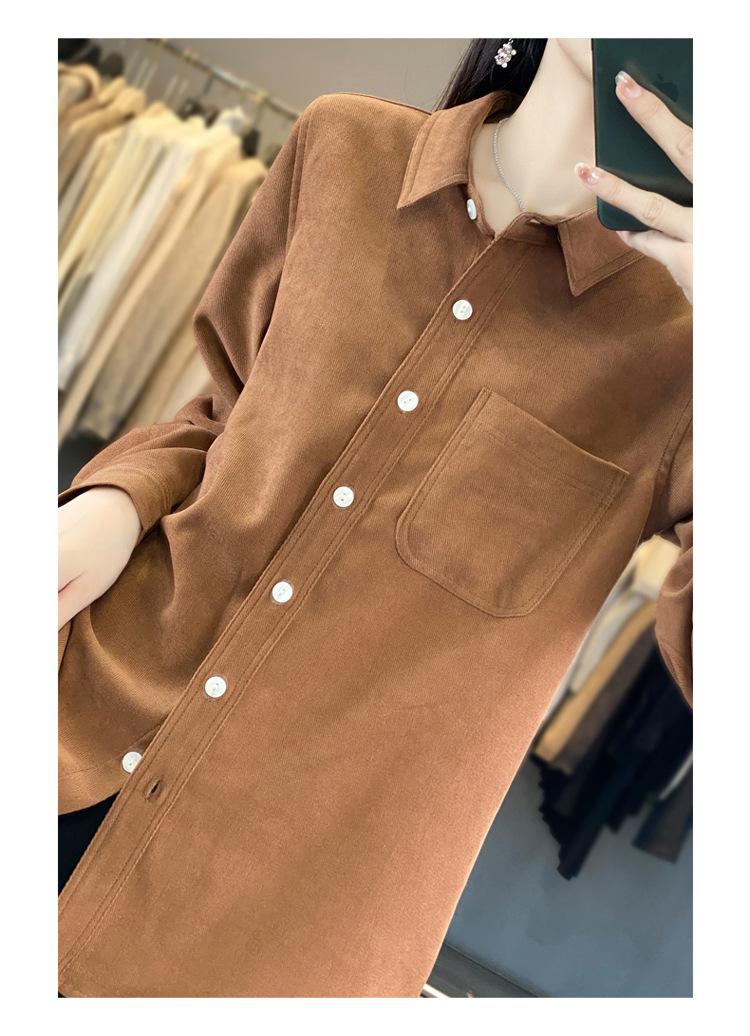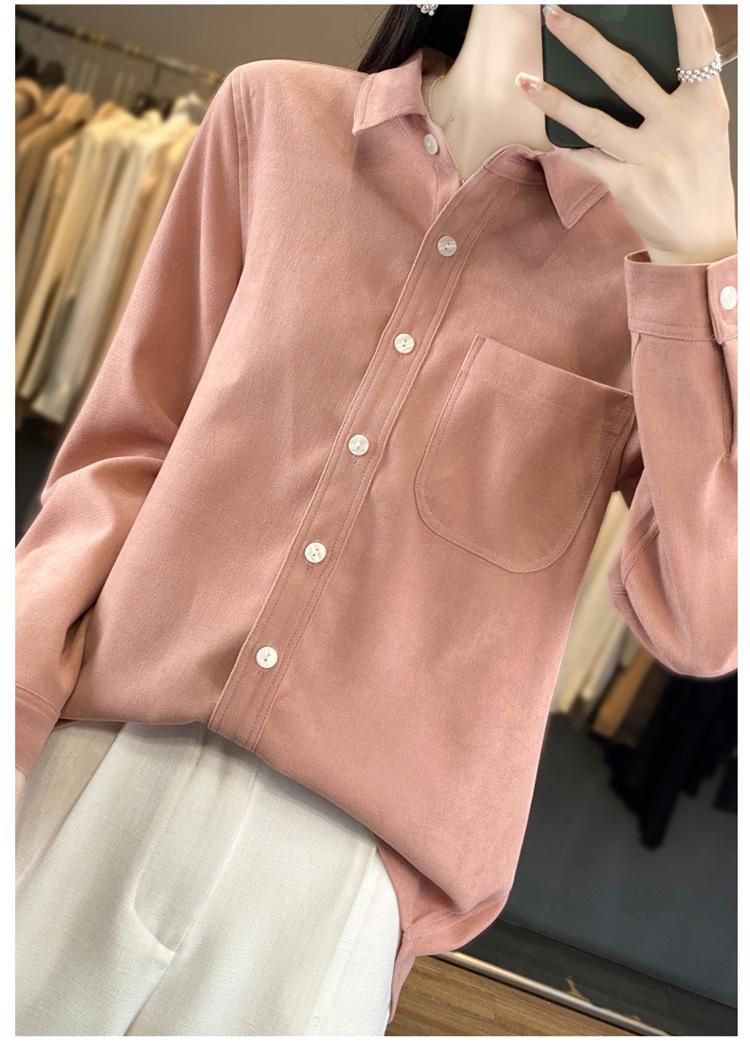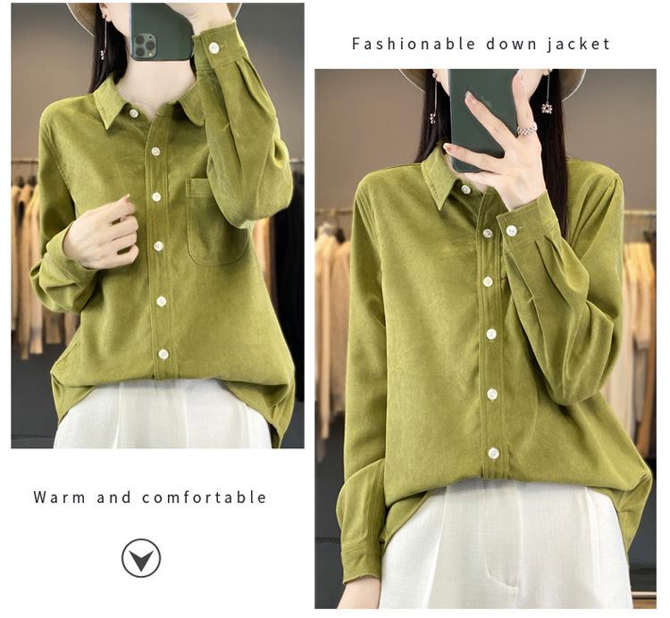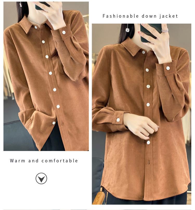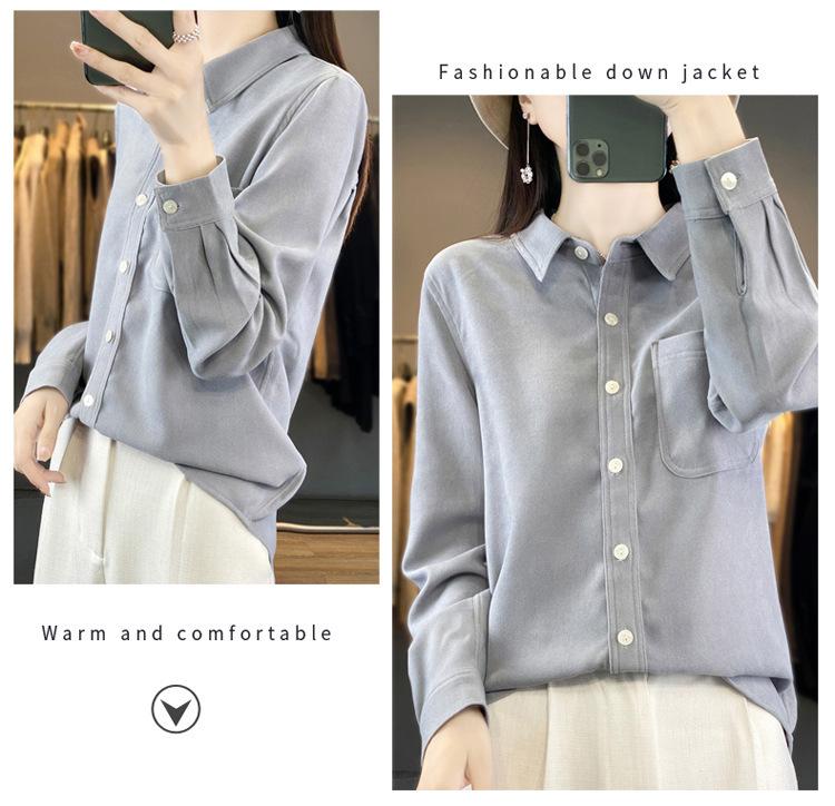 25 Nova Camisa Feminina de Bolso Escovada Estilo Francês Outono Camisa Casual Versátil em Camadas Jaqueta para Mulheres