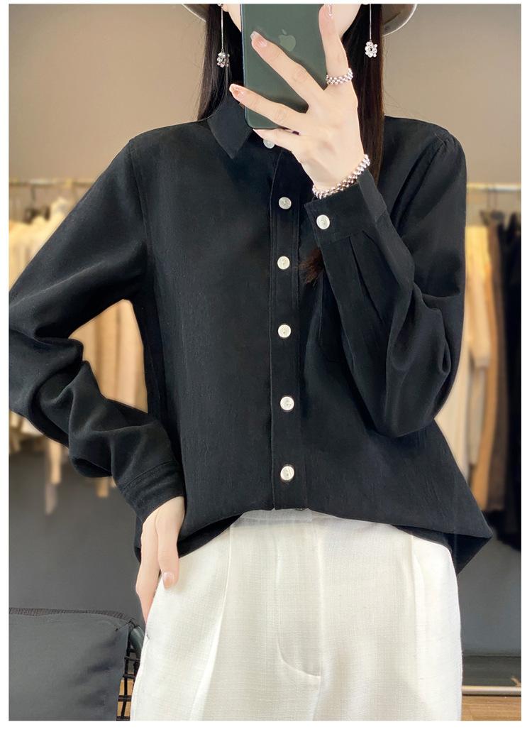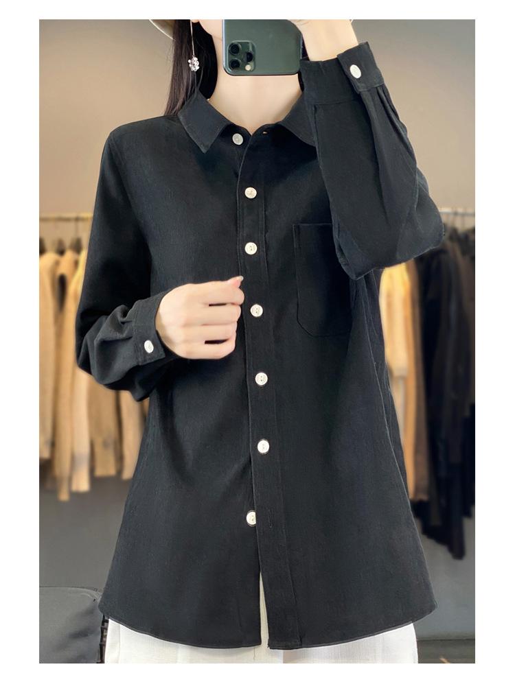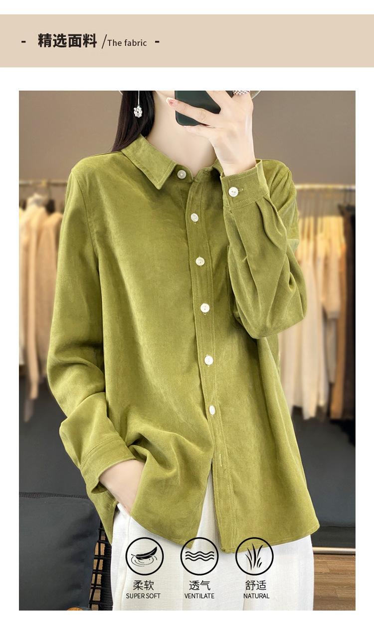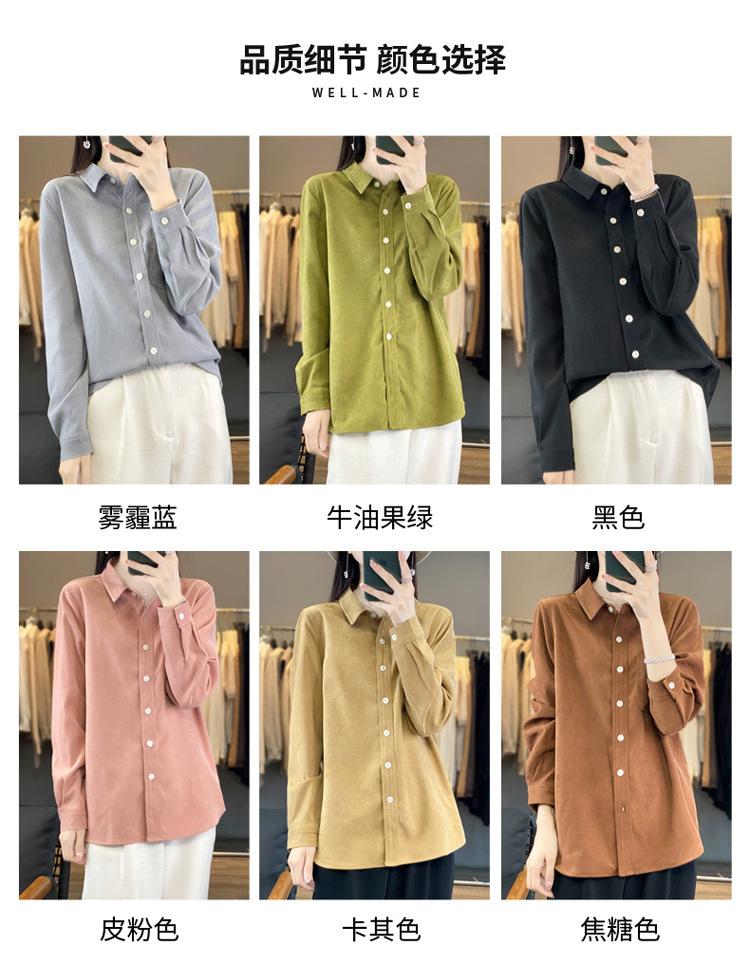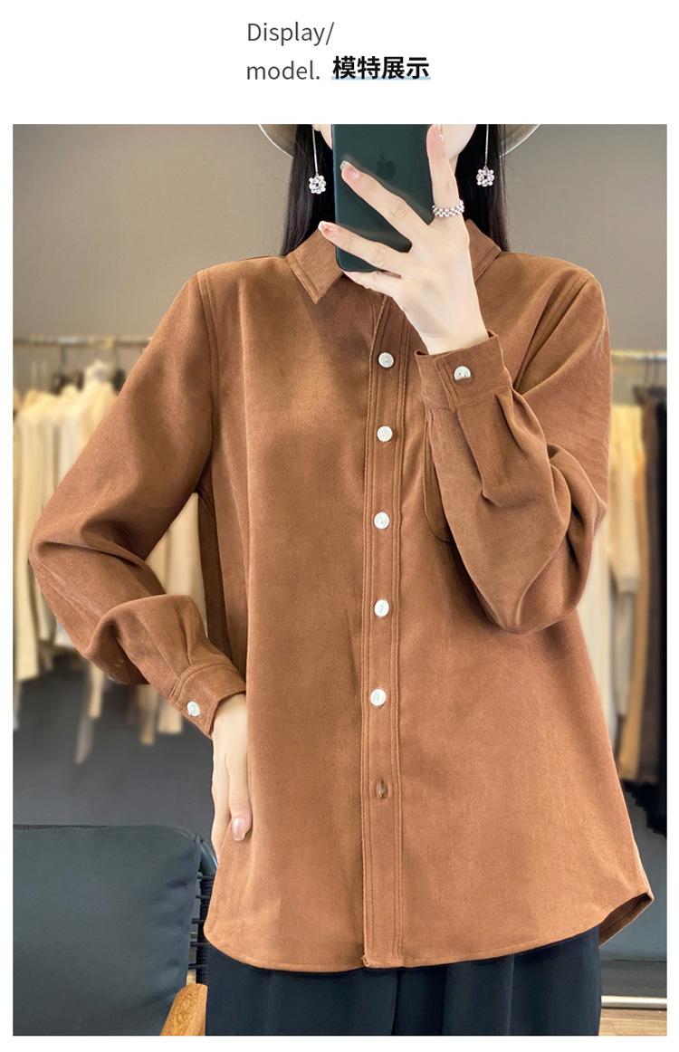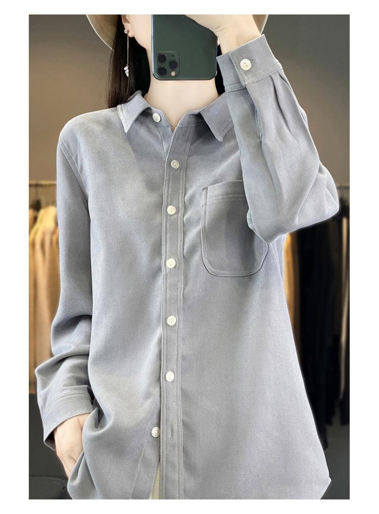 25 Nova Camisa Feminina de Bolso Escovada Estilo Francês Outono Camisa Casual Versátil em Camadas Jaqueta para Mulheres