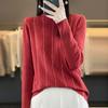 Roupas Femininas 2025 Moda Outono Suéter de Lã Versátil Casual Gola Média Cor Sólida Tricô
