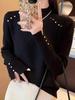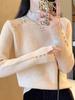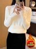 Suéter feminino de gola alta com forro de lã, grosso, inverno, peça única, veludo, estilo ocidental, top quente, camisa de base interna de alta qualidade para mulheres