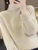 Suéter de caxemira feminino de gola alta, 100% cor sólida, manga curta, fino, sem tingimento, outono e inverno