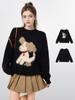 Suéter de malha de filhote de cachorro preto com ombro de fora, feminino, outono e inverno, solto, estilo preguiçoso, suéter de malha espessada de alta qualidade