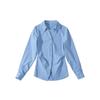 Primavera e Outono 2025 Camisa Listrada Azul de Manga Longa Yujie Estilo Commuter Temperamento Slim-fit Cintura Slimming Top Camisa da Moda