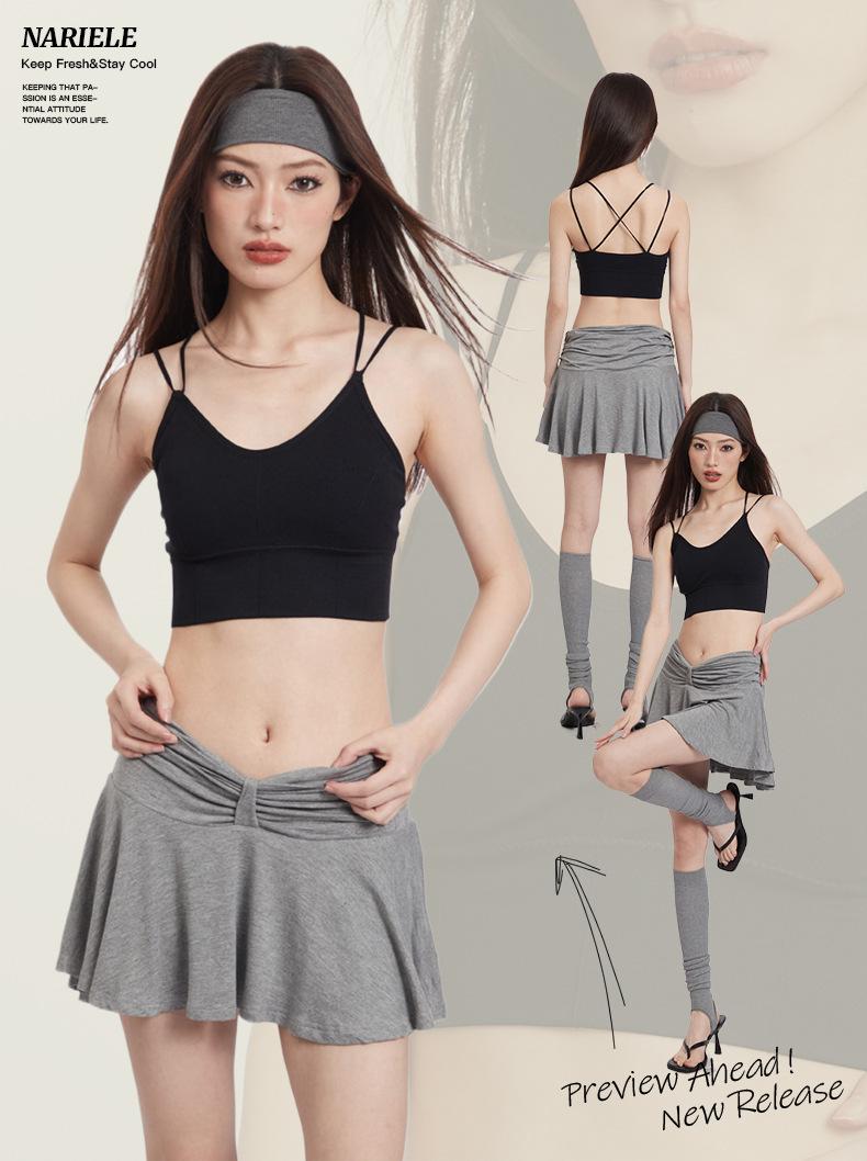 HeyHenry estilo europeu e americano duas agulhas com almofada no peito lindo exercício de costas ioga sexy cruz envoltório camisola no peito
