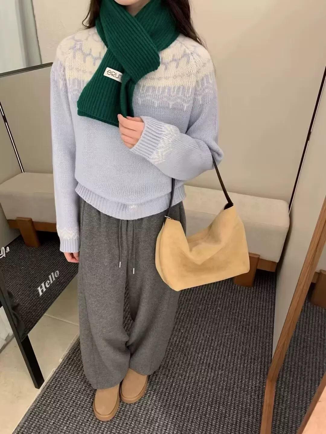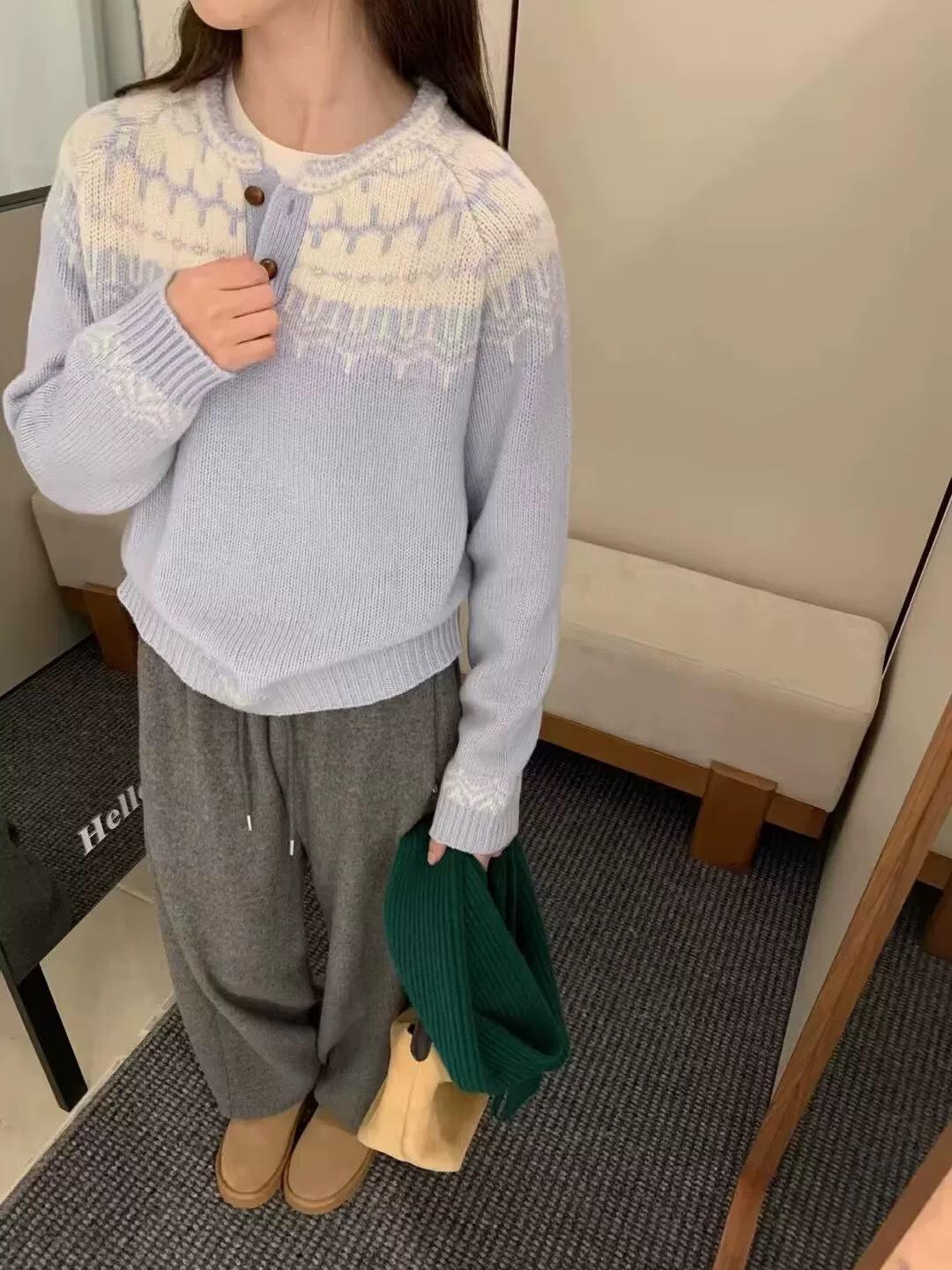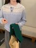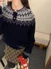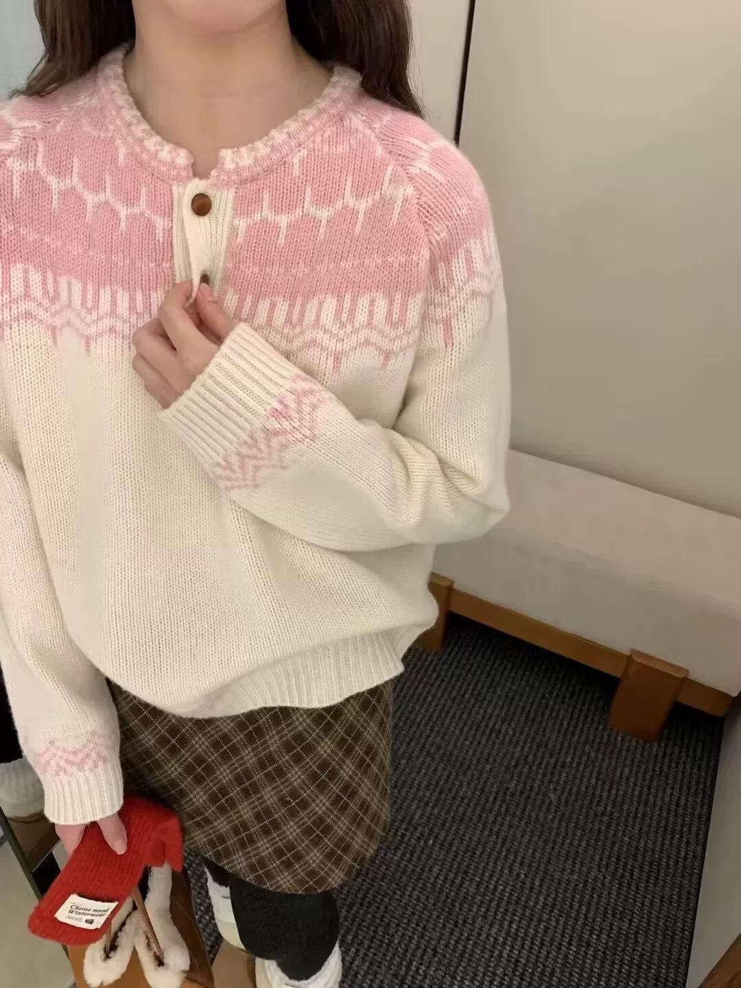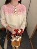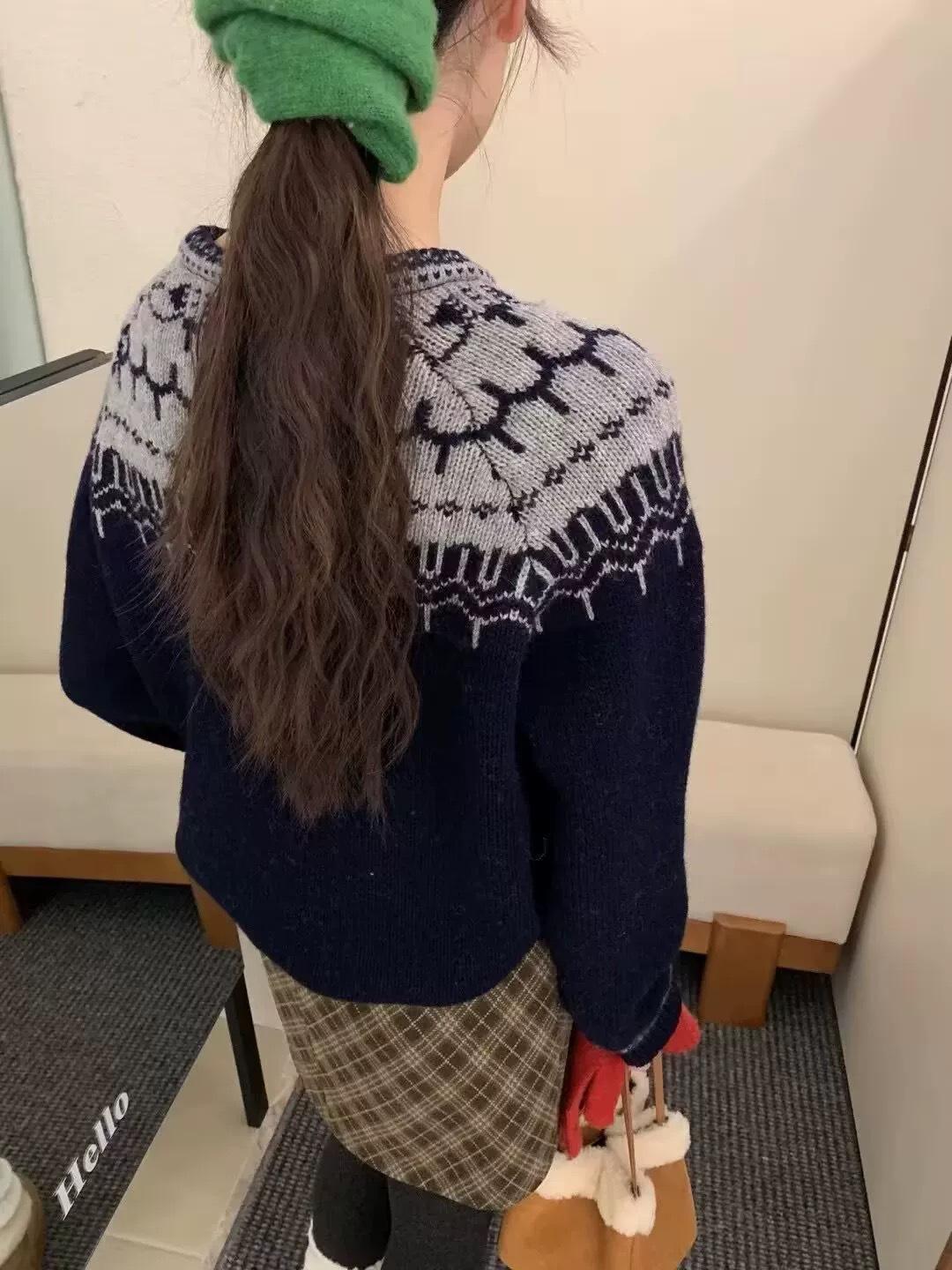Suéter jacquard estilo coreano retrô com gola meio aberta, pulôver feminino, outono e inverno 2024, novo suéter para todos os gostos, top 898